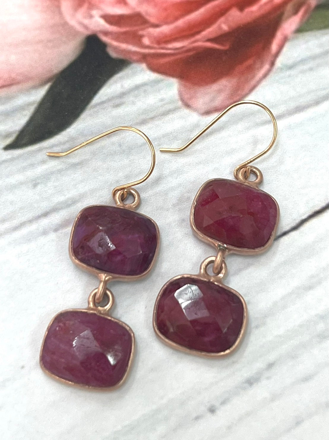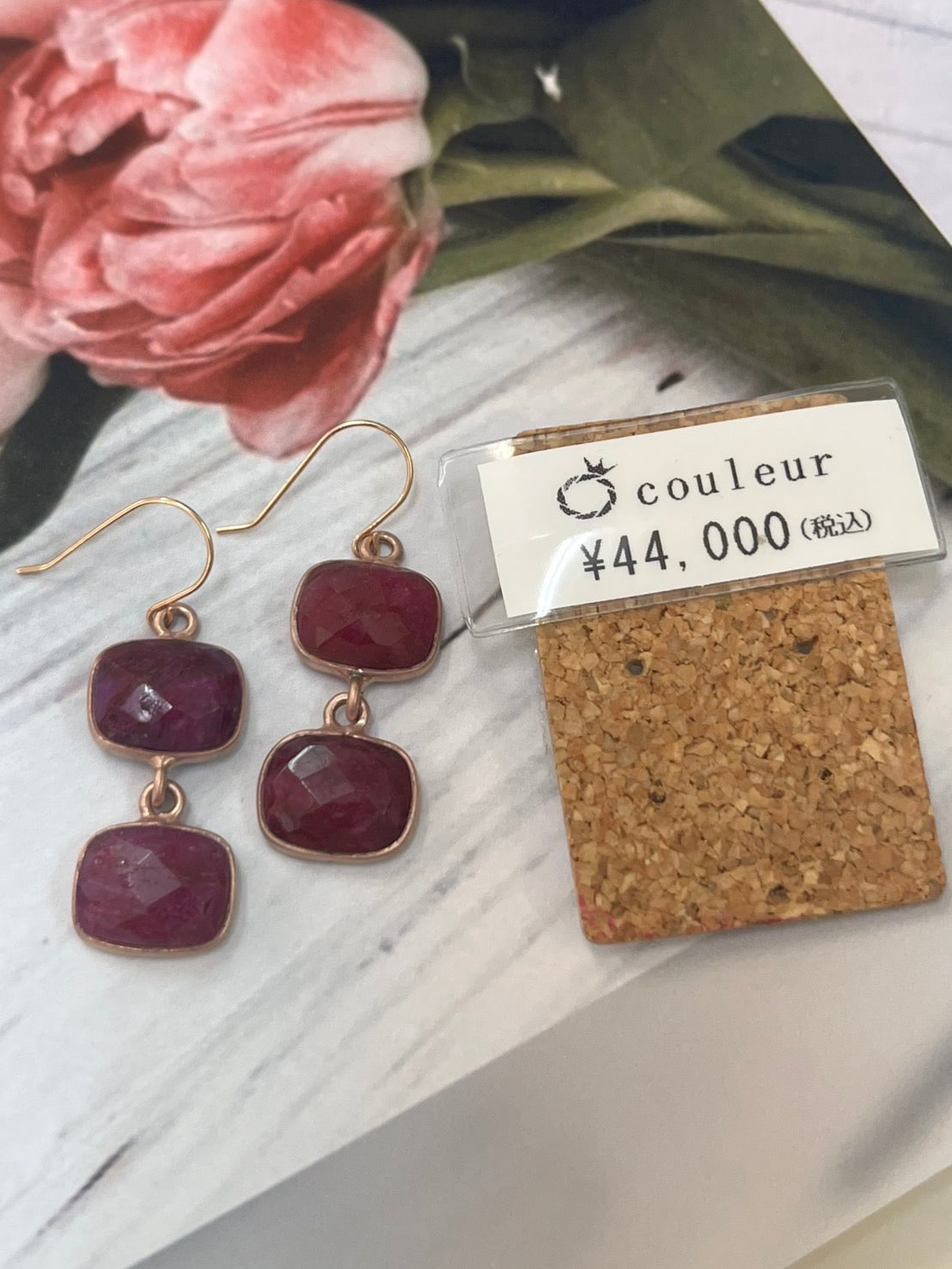 魅惑の赤、ルビーの輝きを身に纏う、K18PGコーティングのルビーピアス。美しいルビー✨
