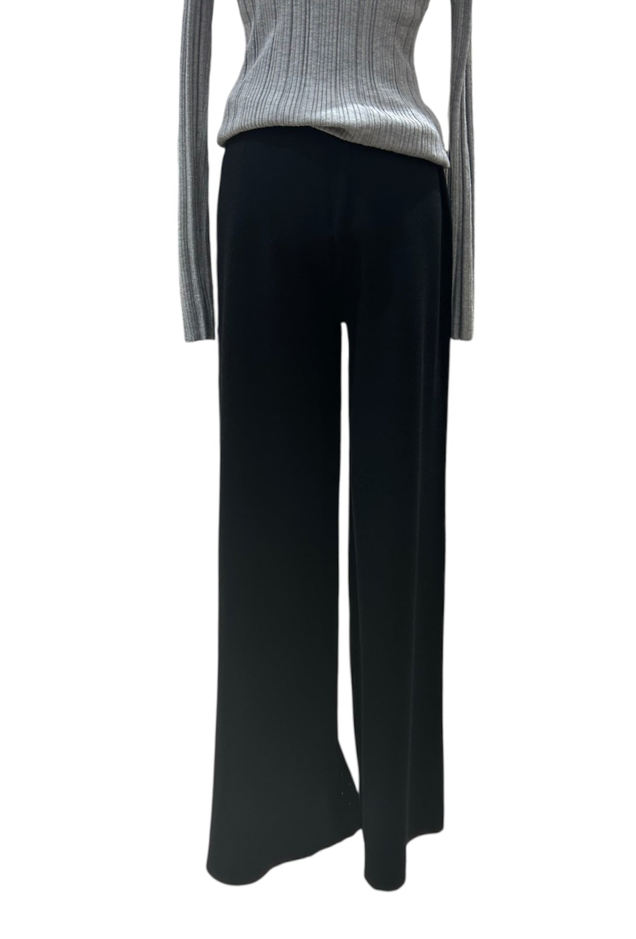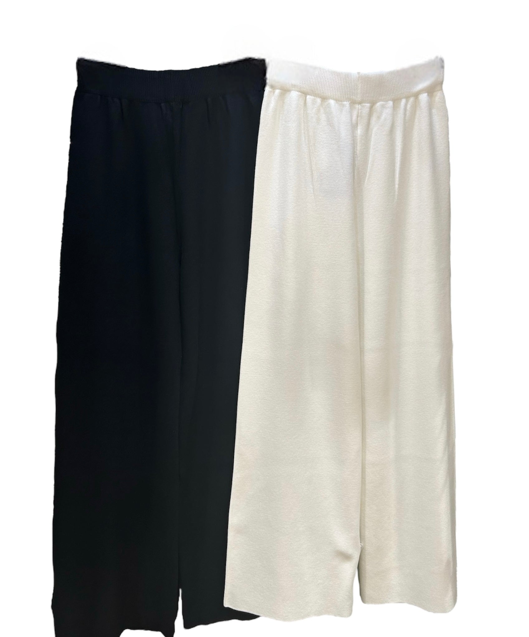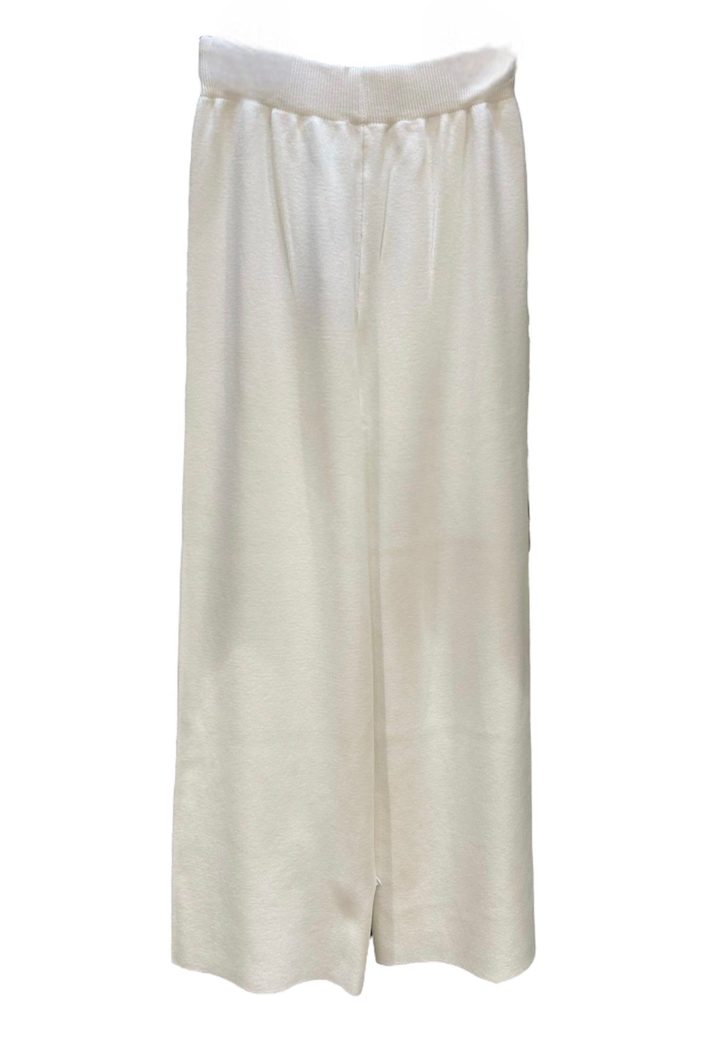 身体のラインを拾いすぎない、ワイドシルエットのニットパンツです。ウエストはゴム仕様で、ストレスフリーな履き心地で、モチモチした肌触りも◎脚長効果もばっちりです。