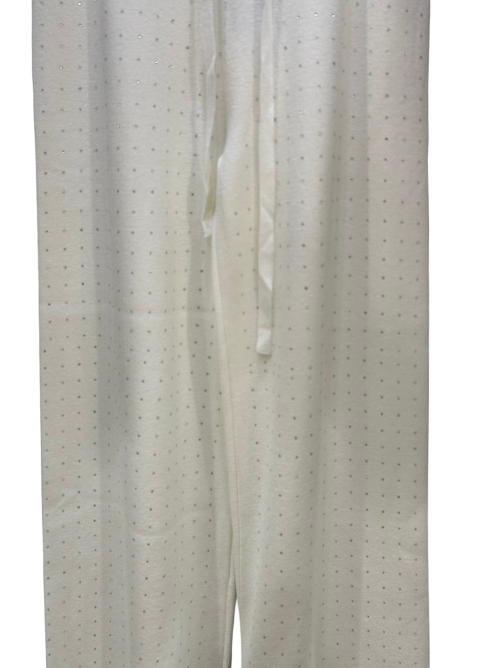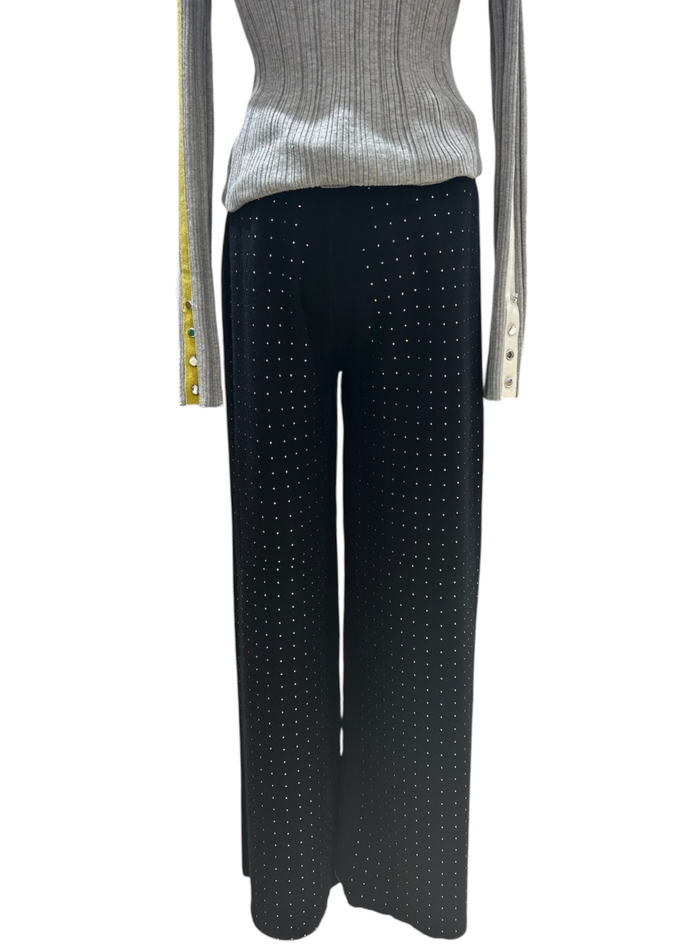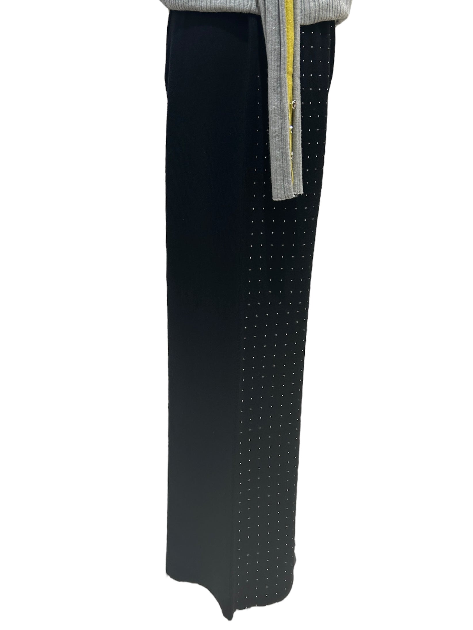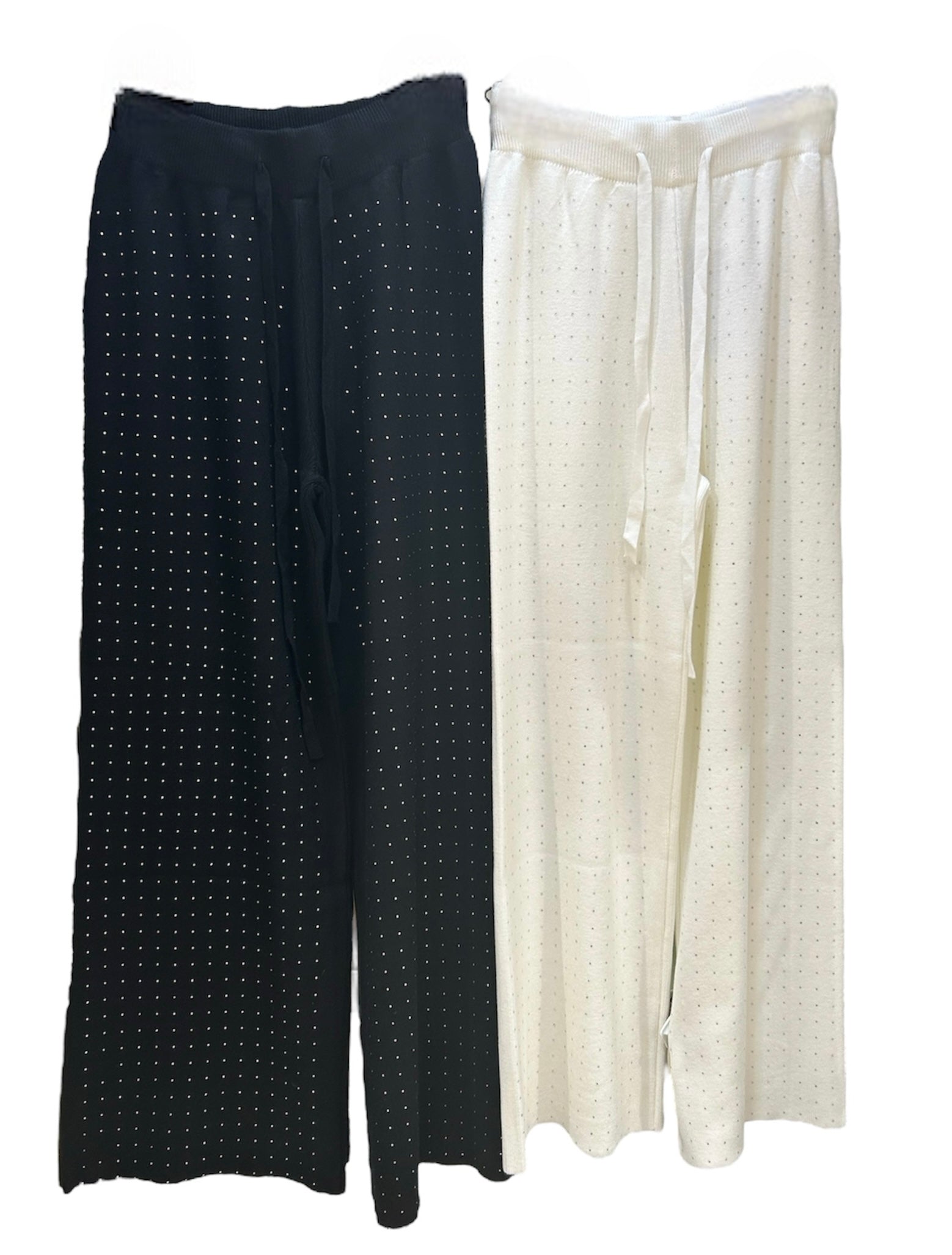 身体のラインを拾いすぎない、ワイドシルエットのニットパンツです。ウエストはゴム仕様で、ストレスフリーな履き心地で、モチモチした肌触りも◎脚長効果もばっちりです。
