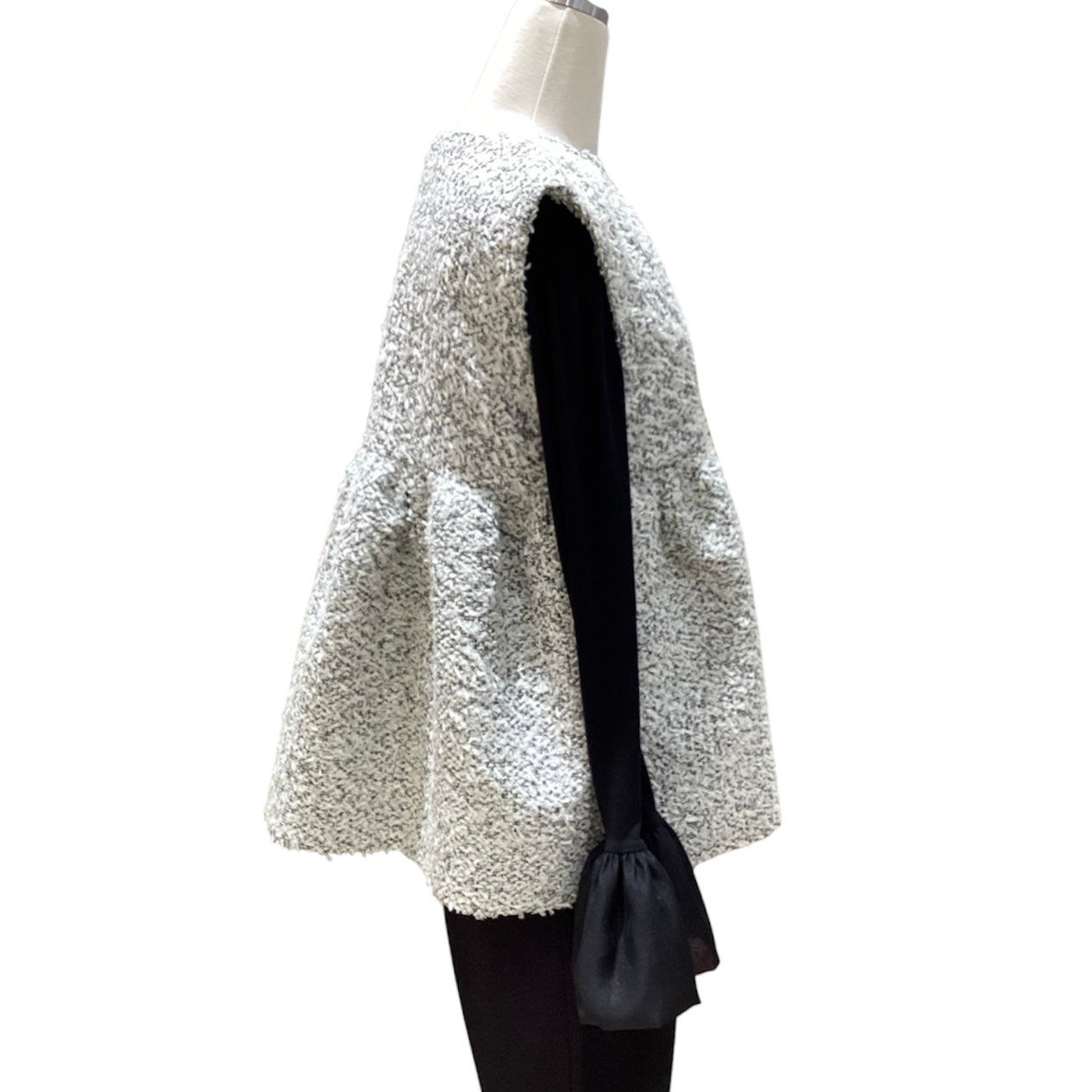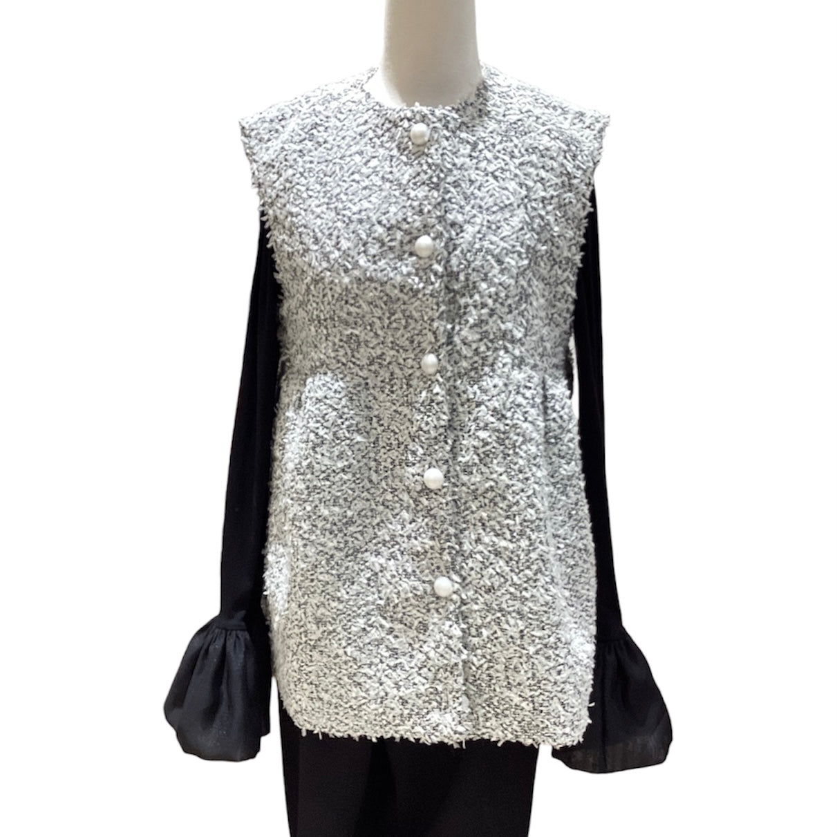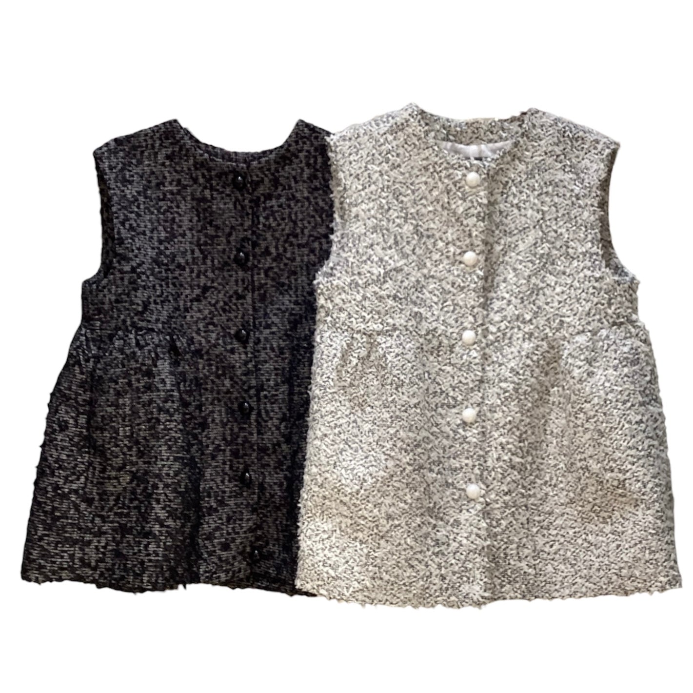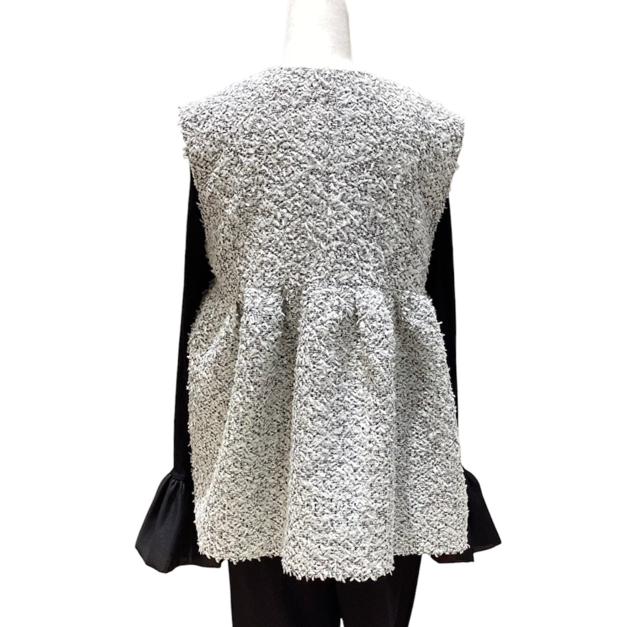 ウエストシェイプされたクラシカルなツイードジレはペプラムシルエットで女性らしくエレガントな印象に。ヒップが丁度隠れるくらいの丈感で ブラウスやニットとレイヤードしたりとロングシーズン活動するアイテムです。セレモニーにもおすすめ◎
