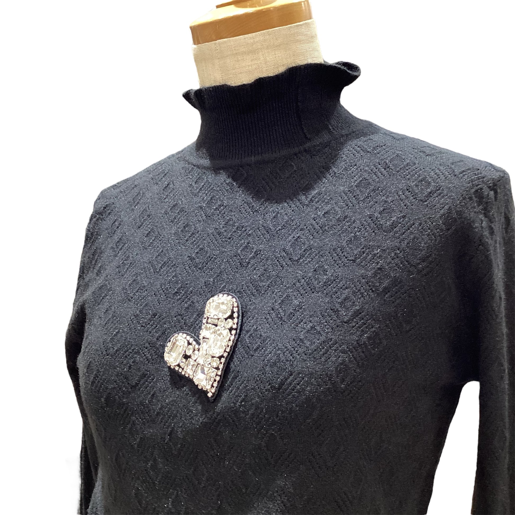 繊細な編み地が肌に心地よく、ジャケットのインナーとしても一枚で着ても映える、フリルハイネックセーター。繊細なパールビジューが胸元にきらめきを添え、上品さと可愛らしさを両立した一枚です。冬のマストバイアイテムです。肌にやさしく包み込まれるような着心地でゆるすぎず、細見えも叶える計算されたフォルムです◎編み地も素敵です。