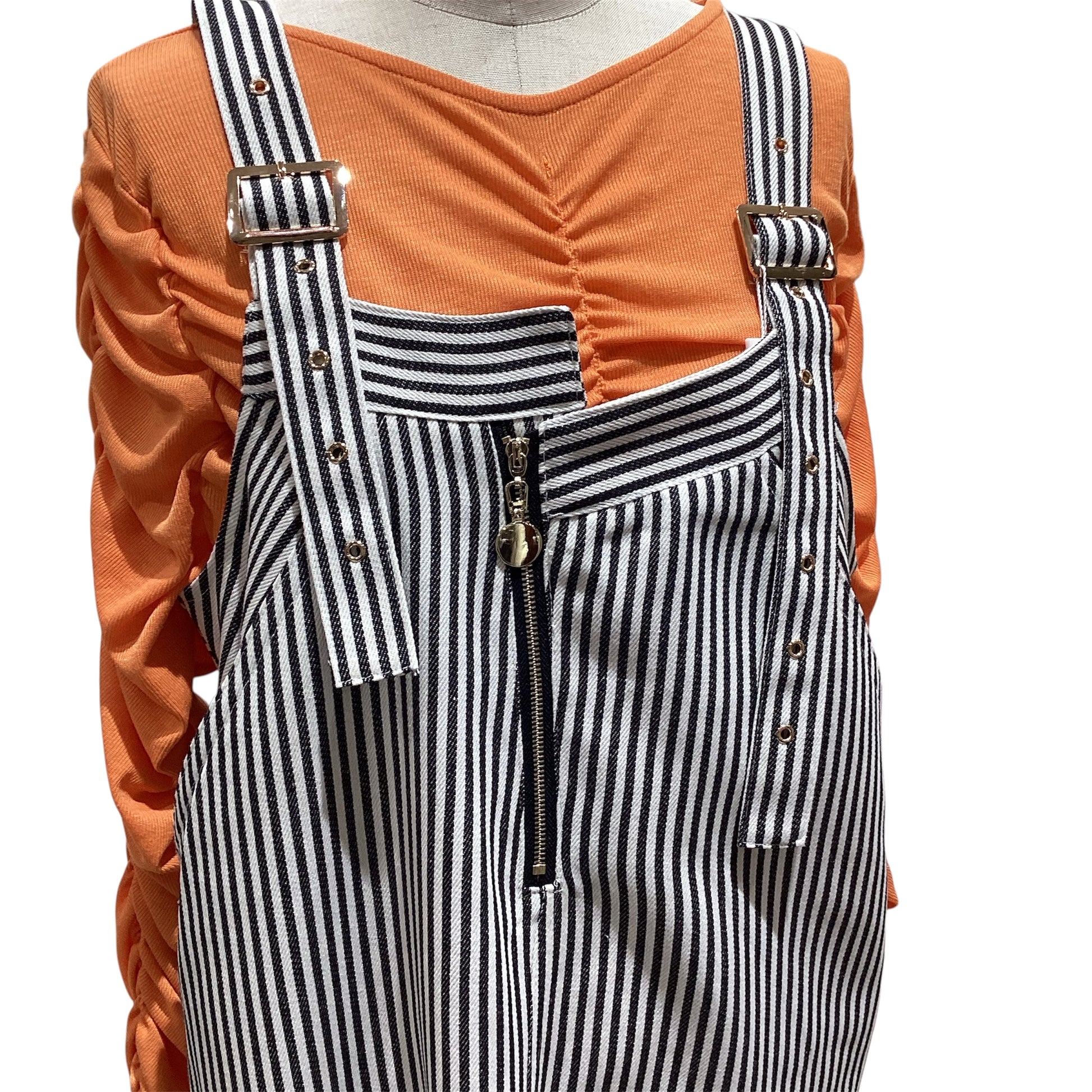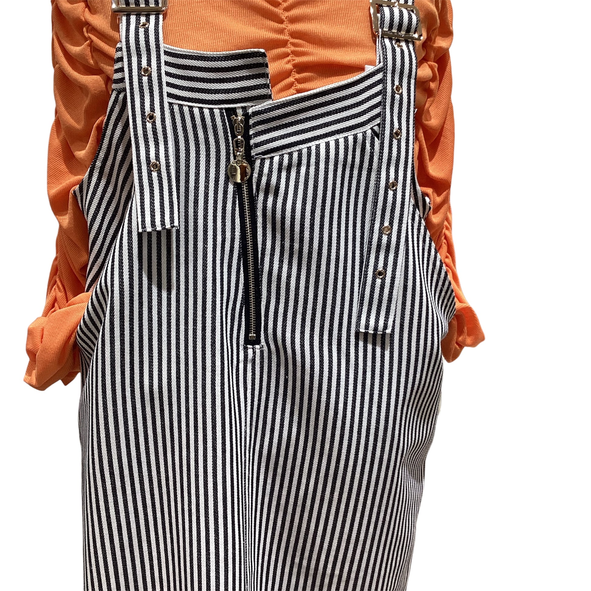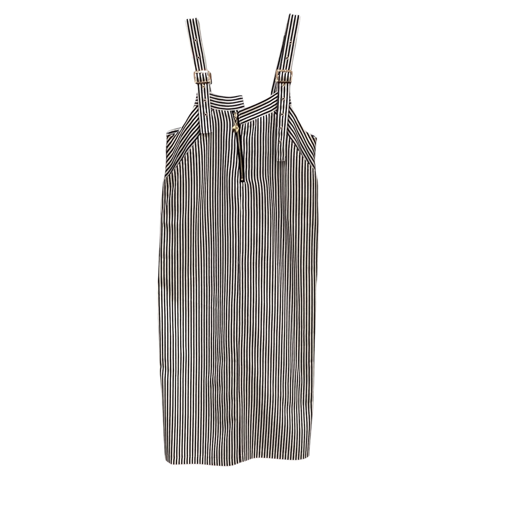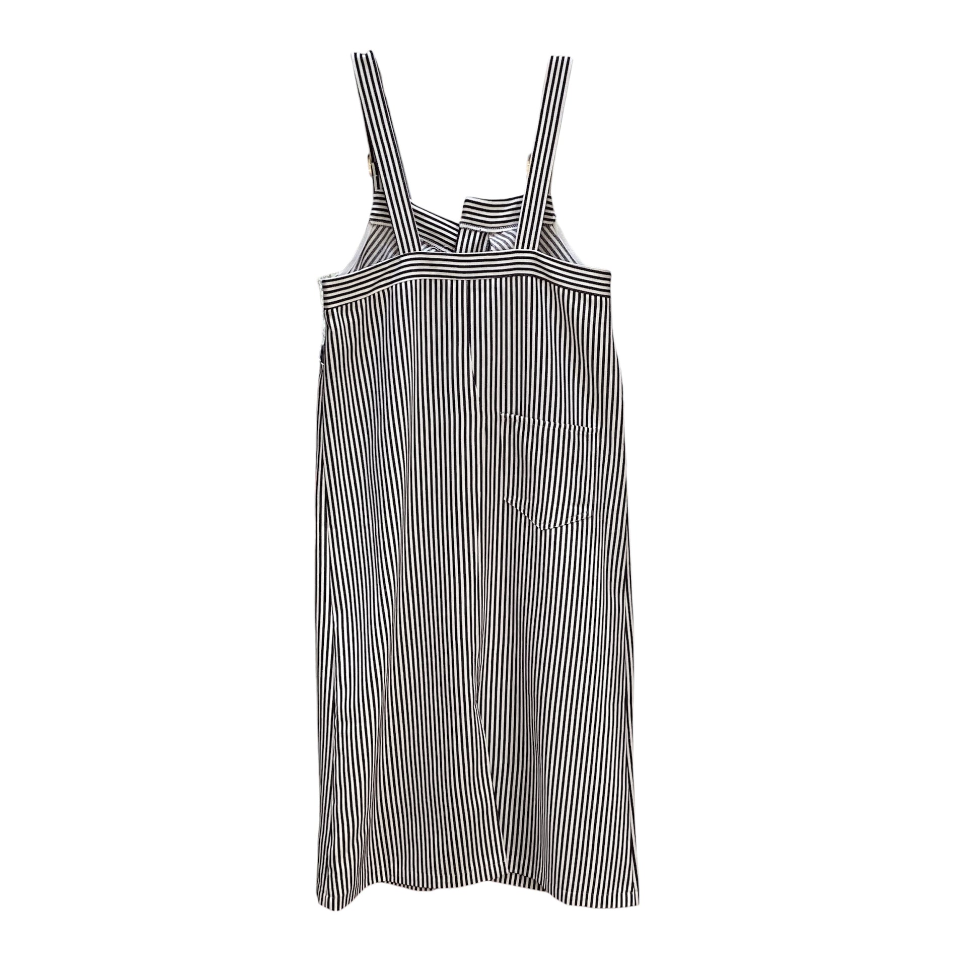 最大のポイントは、胸周りに取り入れた構築的なデザインと、左右で長さを変えたアシンメトリーな肩ベルト。無機質なアイレット(ハトメ)を並べたベルトが、ヒッコリーのカジュアルな印象をシャープに引き締め、モダンな個性を放ちます。ゆったりとしたオーバーサイズシルエットは、気になる体型を自然にカバー◎リラックスした着心地でありながら、計算されたカッティングによって、どこから見ても洗練された佇まいを叶えます。