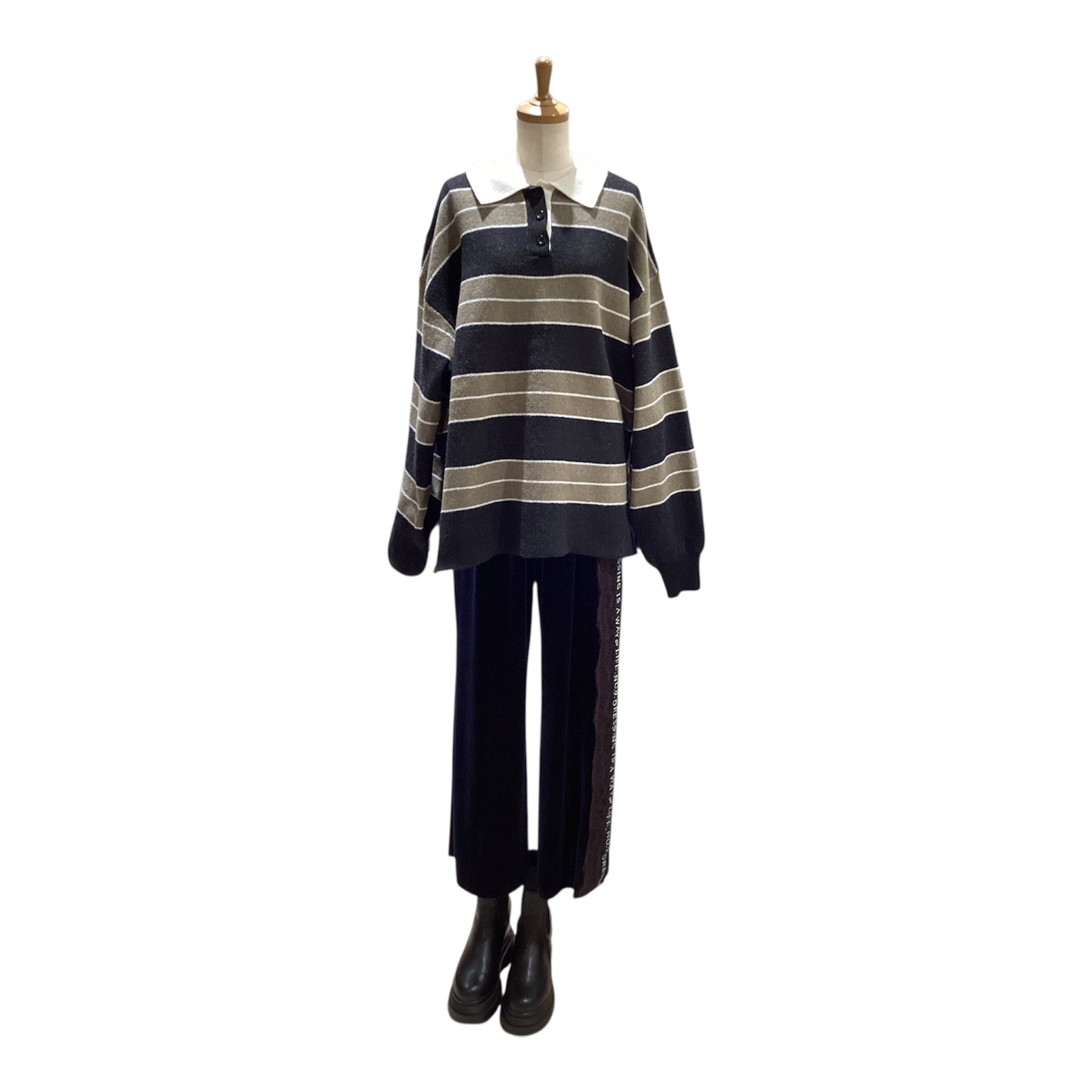 ●ラガーシャツ風の太ピッチボーダーが存在感たっぷり