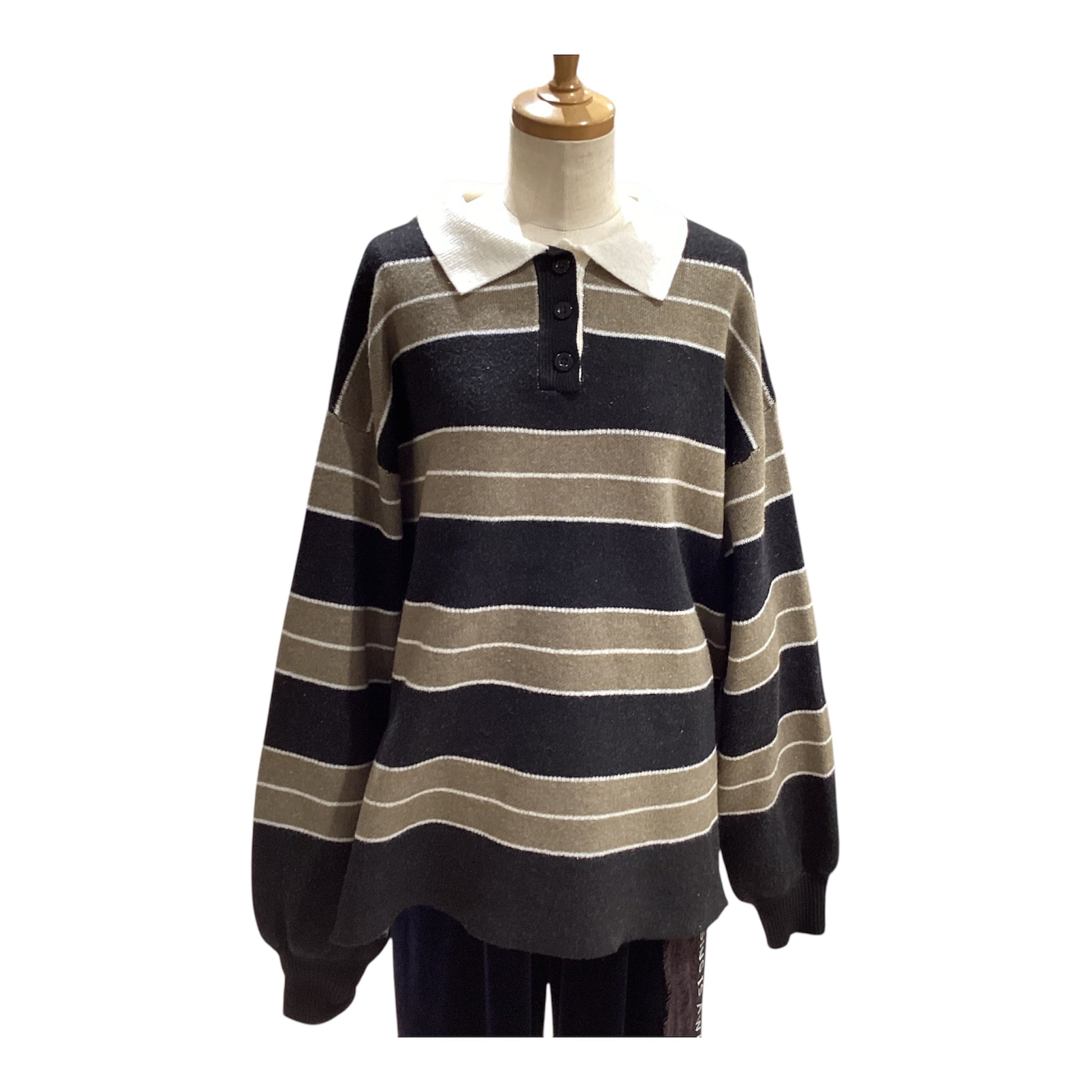 大人カジュアルにこなれる、ラガーボーダー×ポロ襟ニット