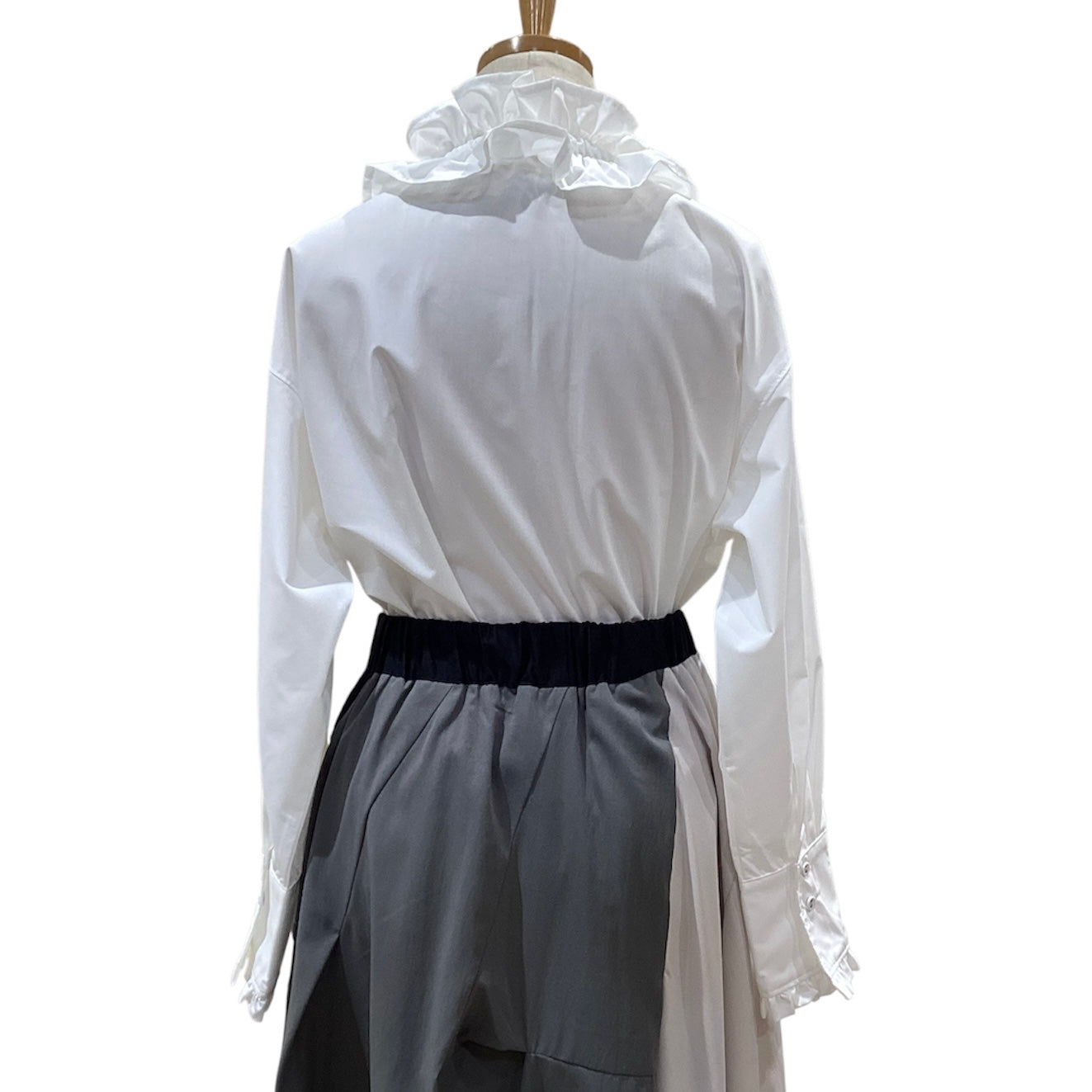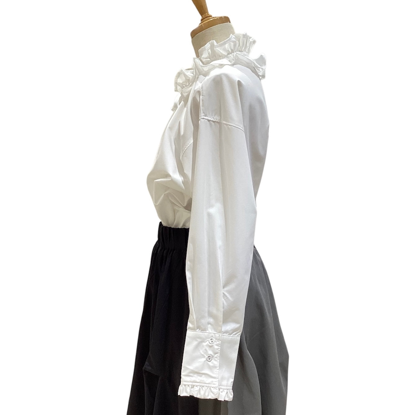 華やかな襟元が目を惹くギャザーフリルシャツです!