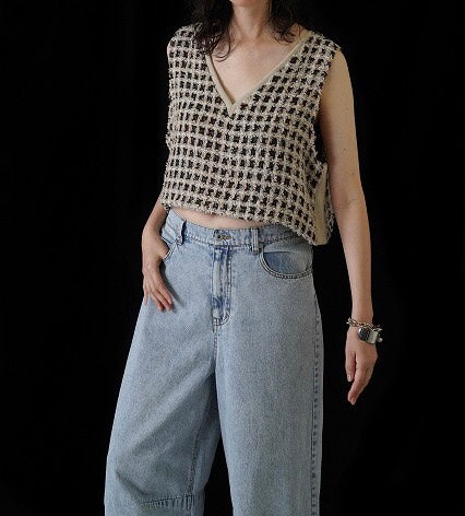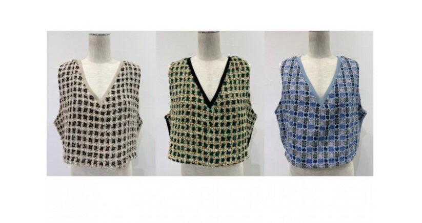 ☆【予約販売2月下旬〜3月中旬納期】CYANフリンジツイードリブベスト