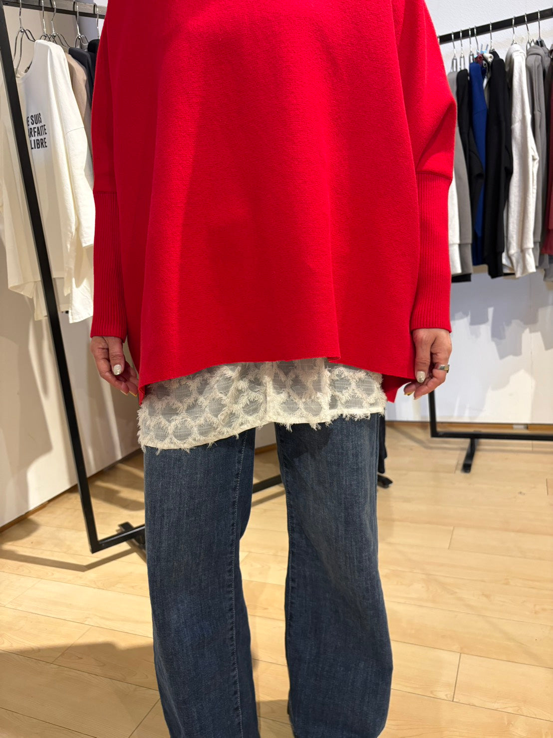 デシンのような質感と光沢感が特徴のカットソー素材です。しっとりとしたなめらかとろみ感とサラっとした質感が特徴でシワになりにくい素材です。