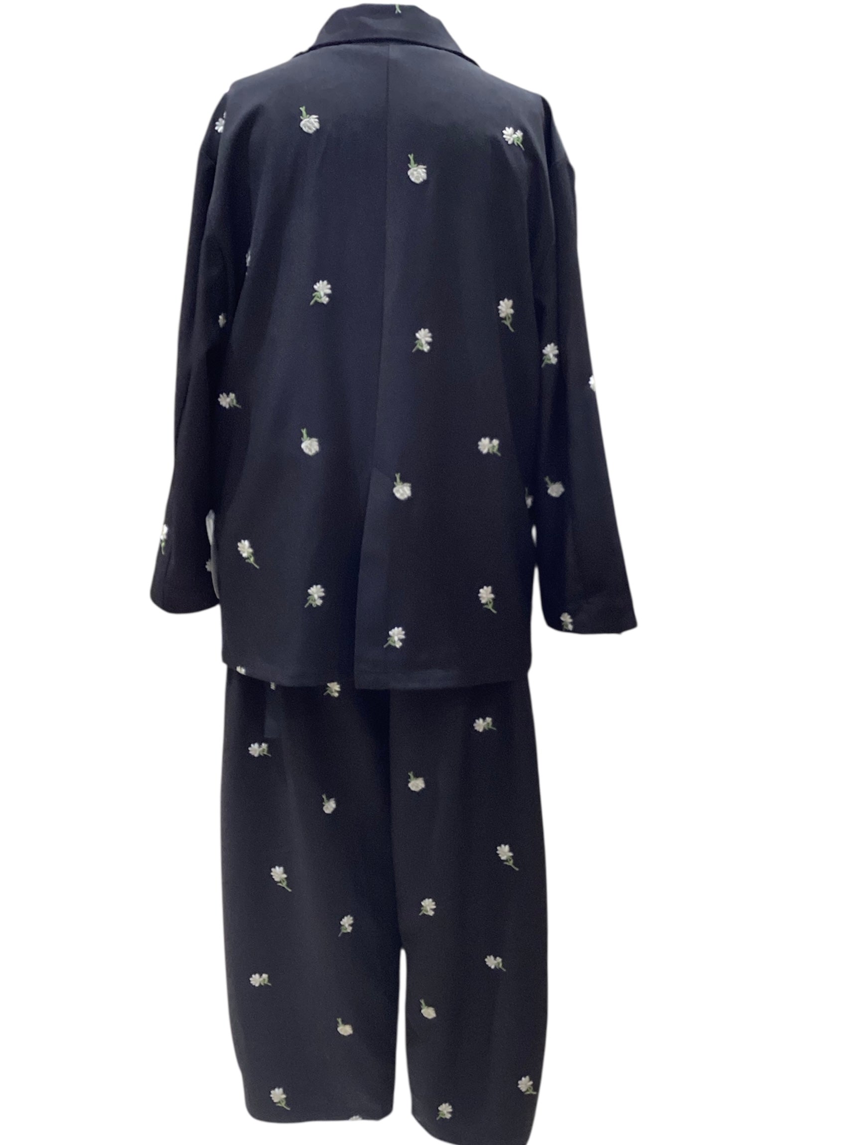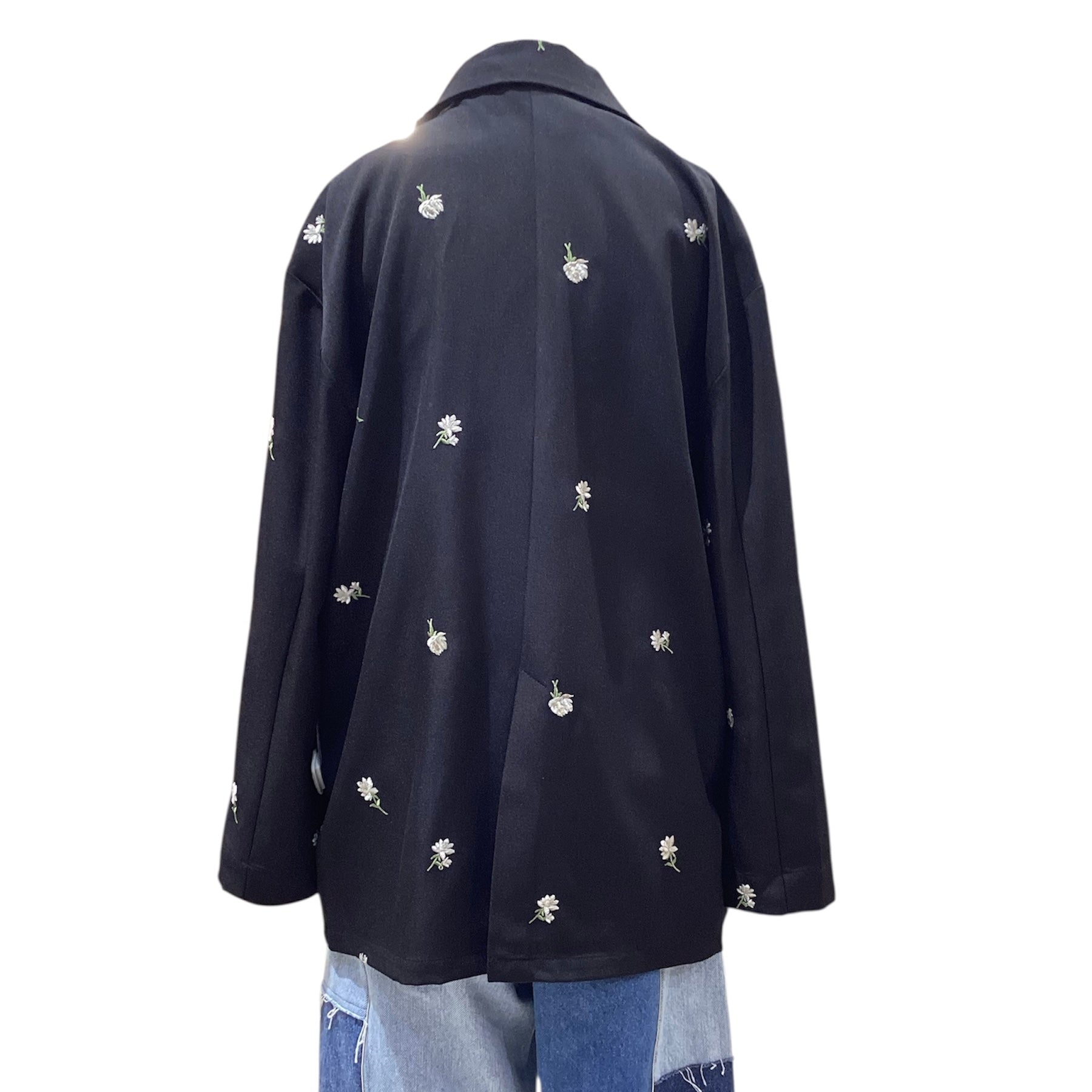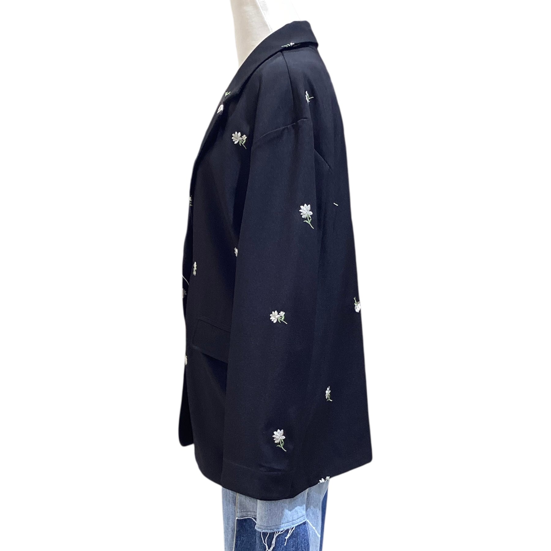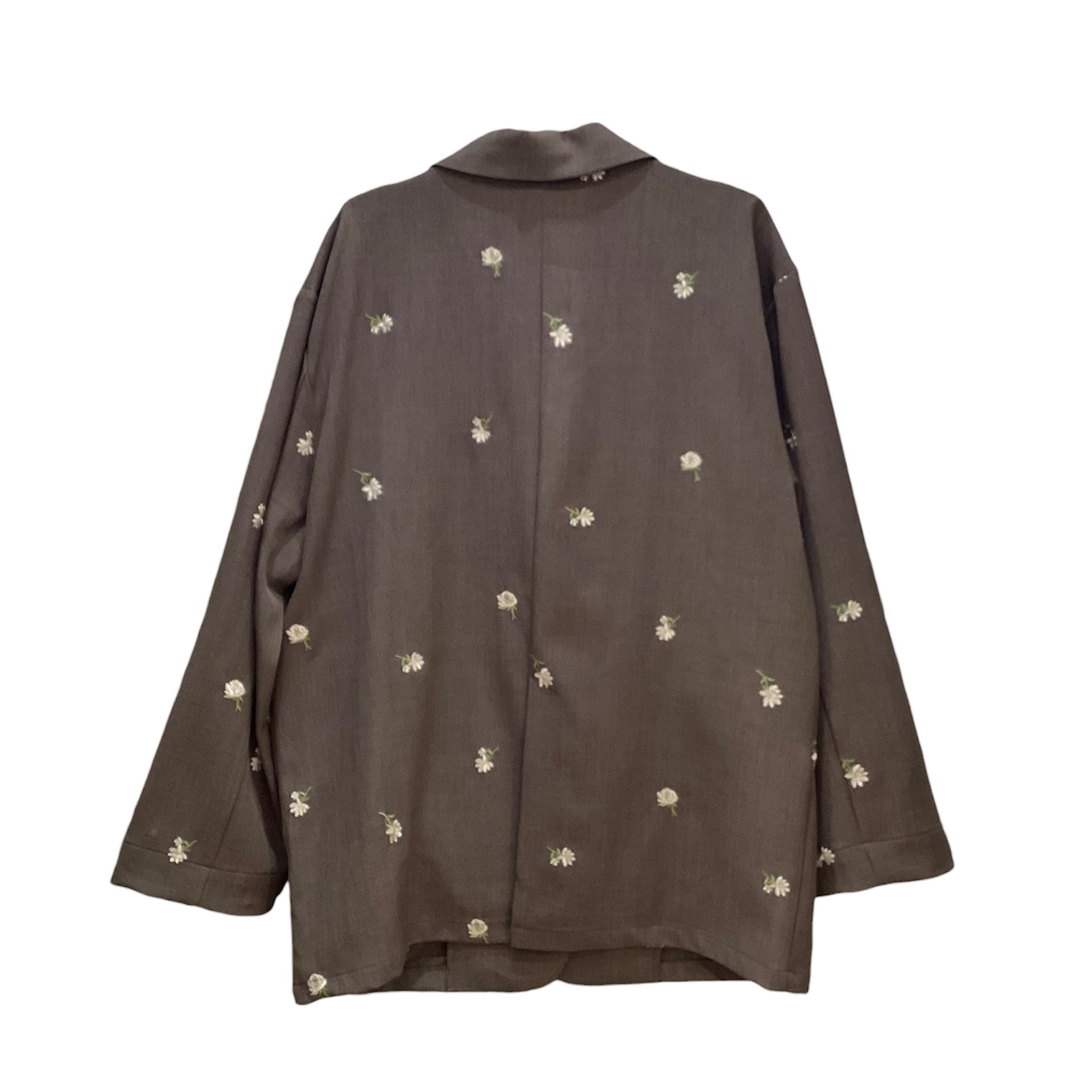 クラシックなテーラードジャケットをベースに、贅沢な小花柄の刺繍を全体に施した、芸術的な美しさが光る一着です。マニッシュなシルエットと可憐な刺繍のコントラストが、大人の遊び心をくすぐります。