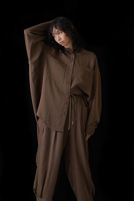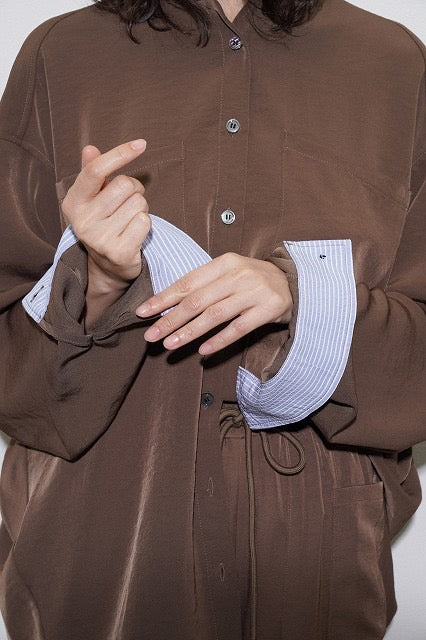☆【予約販売2月上旬〜2月中旬納期】CYANアームドレープグロッシーオーバーシャツ
