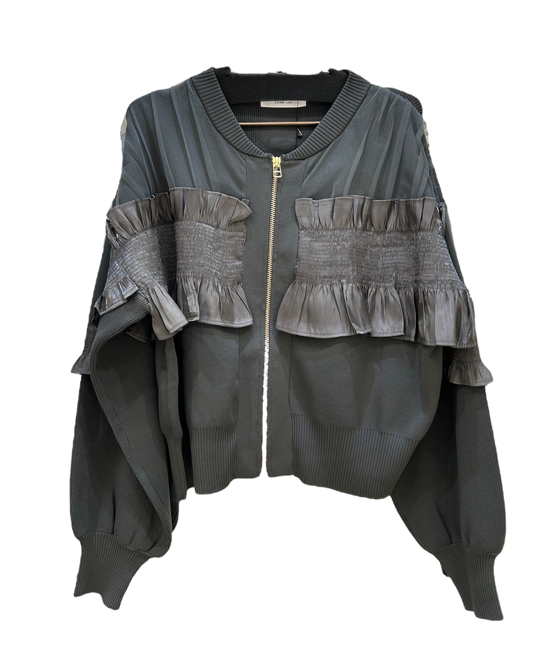華やかで着映えるシャーリングフリルニットブルゾンです!