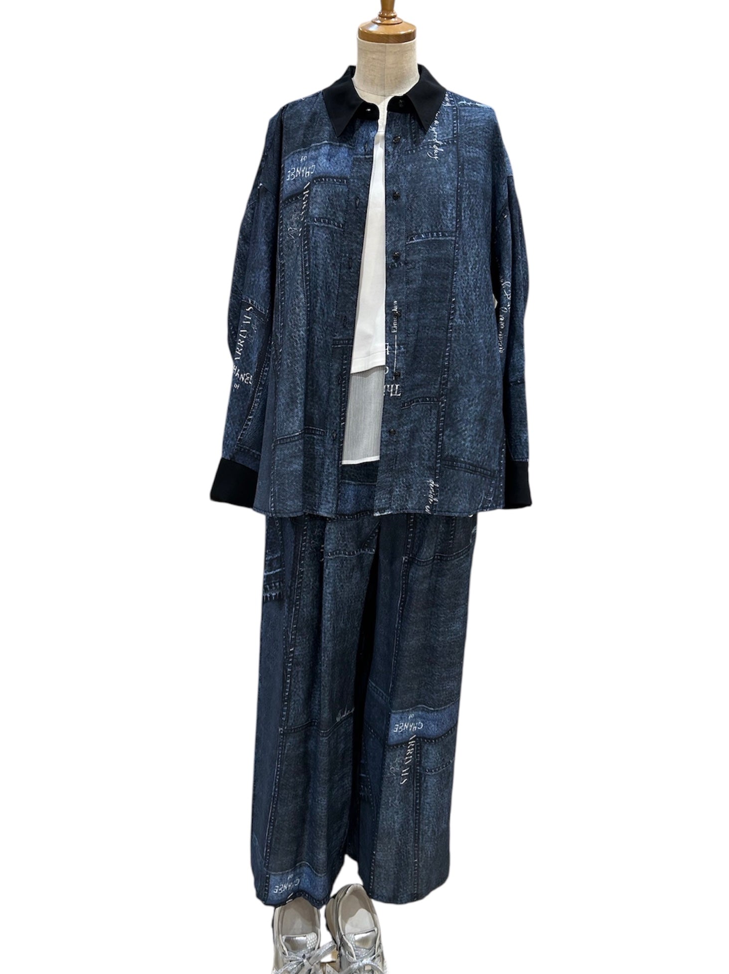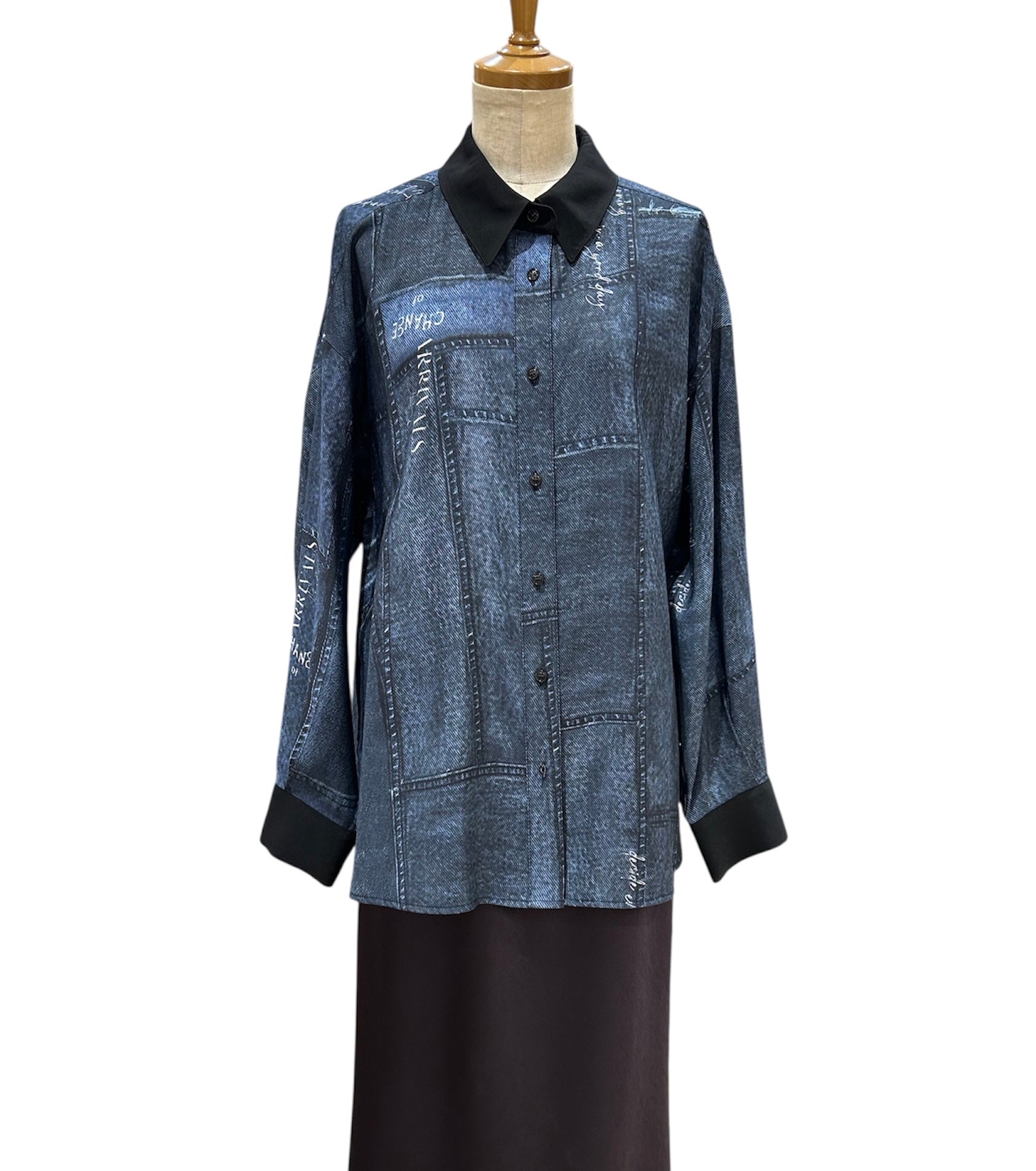前回人気の高かったリメイクデニムプリント柄を秋仕様に素材を変えブラッシュアップしたアイテムです。