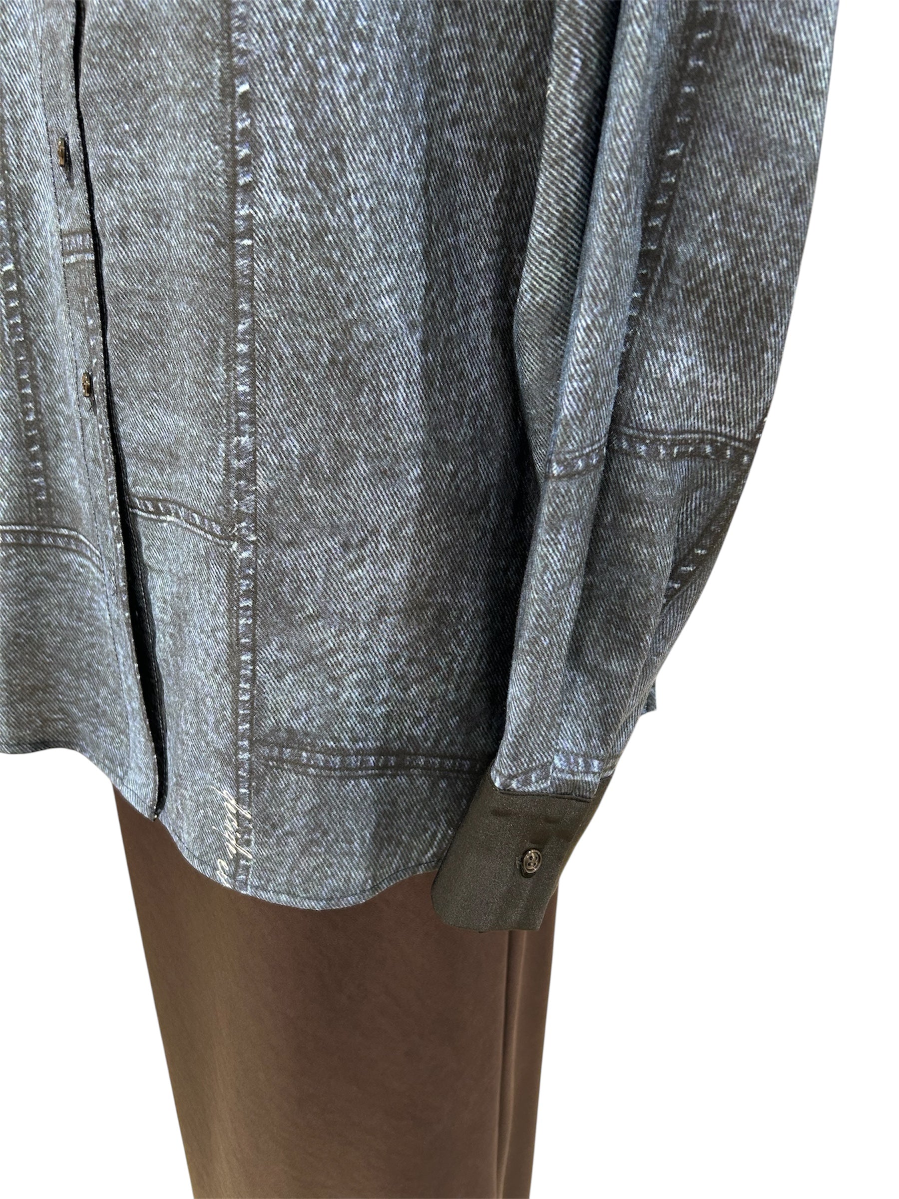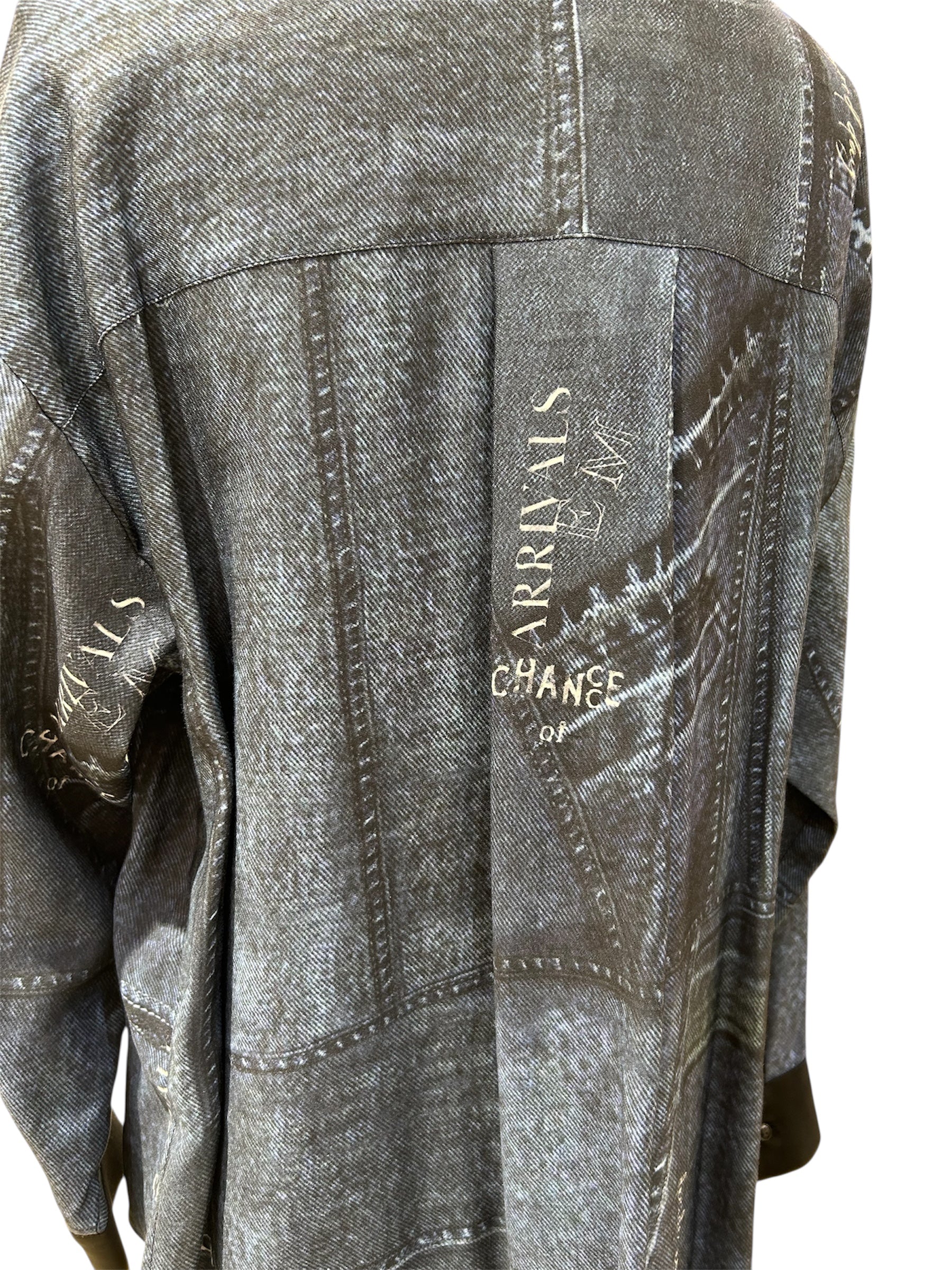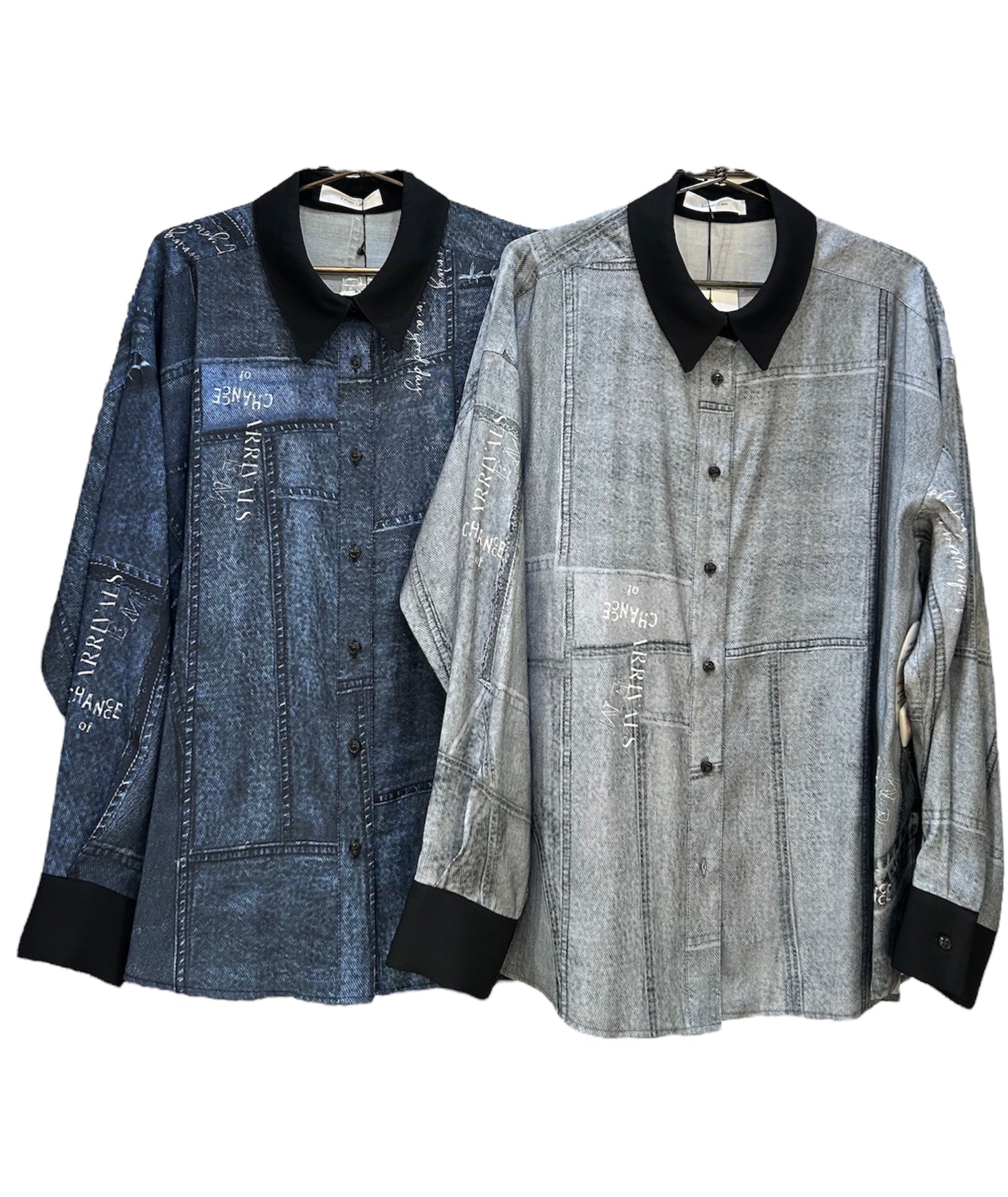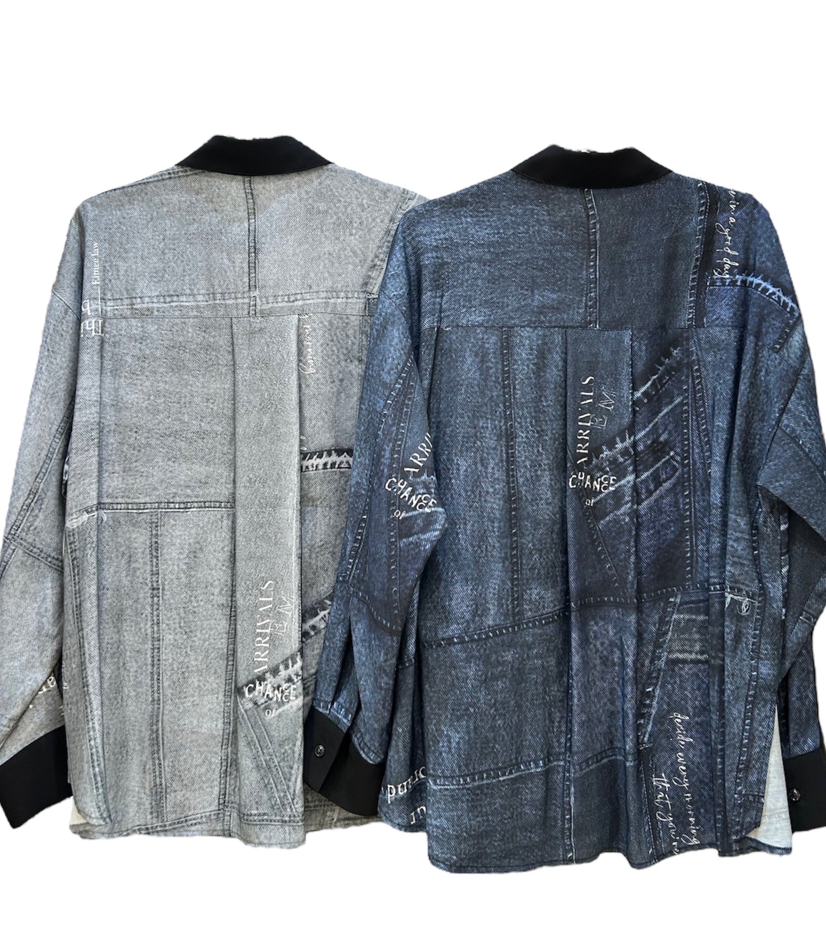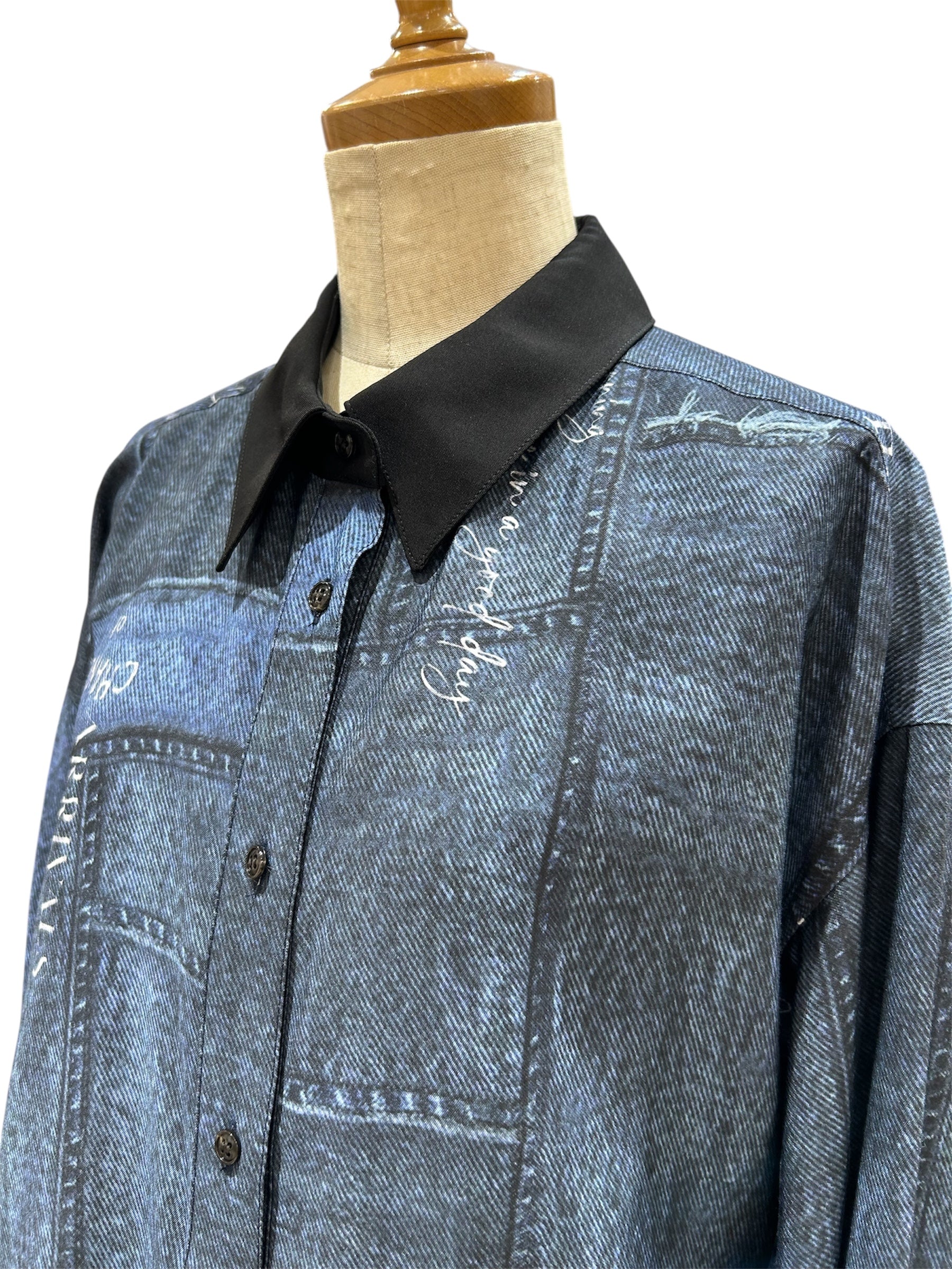 華やかなプリント柄が着映えするパッチワークデニムプリントシャツです!