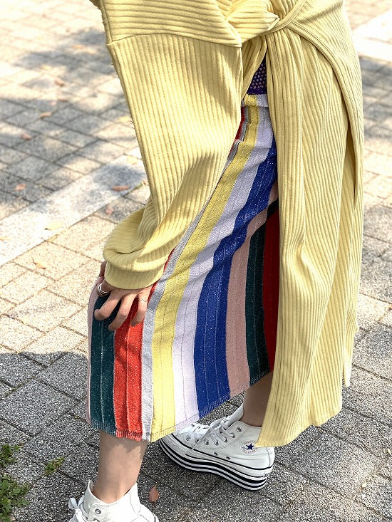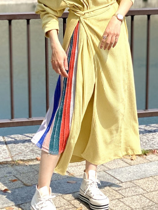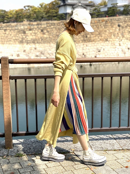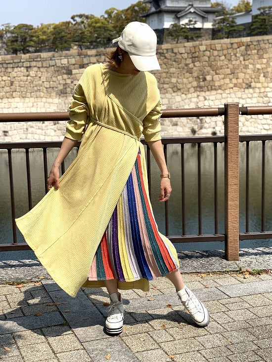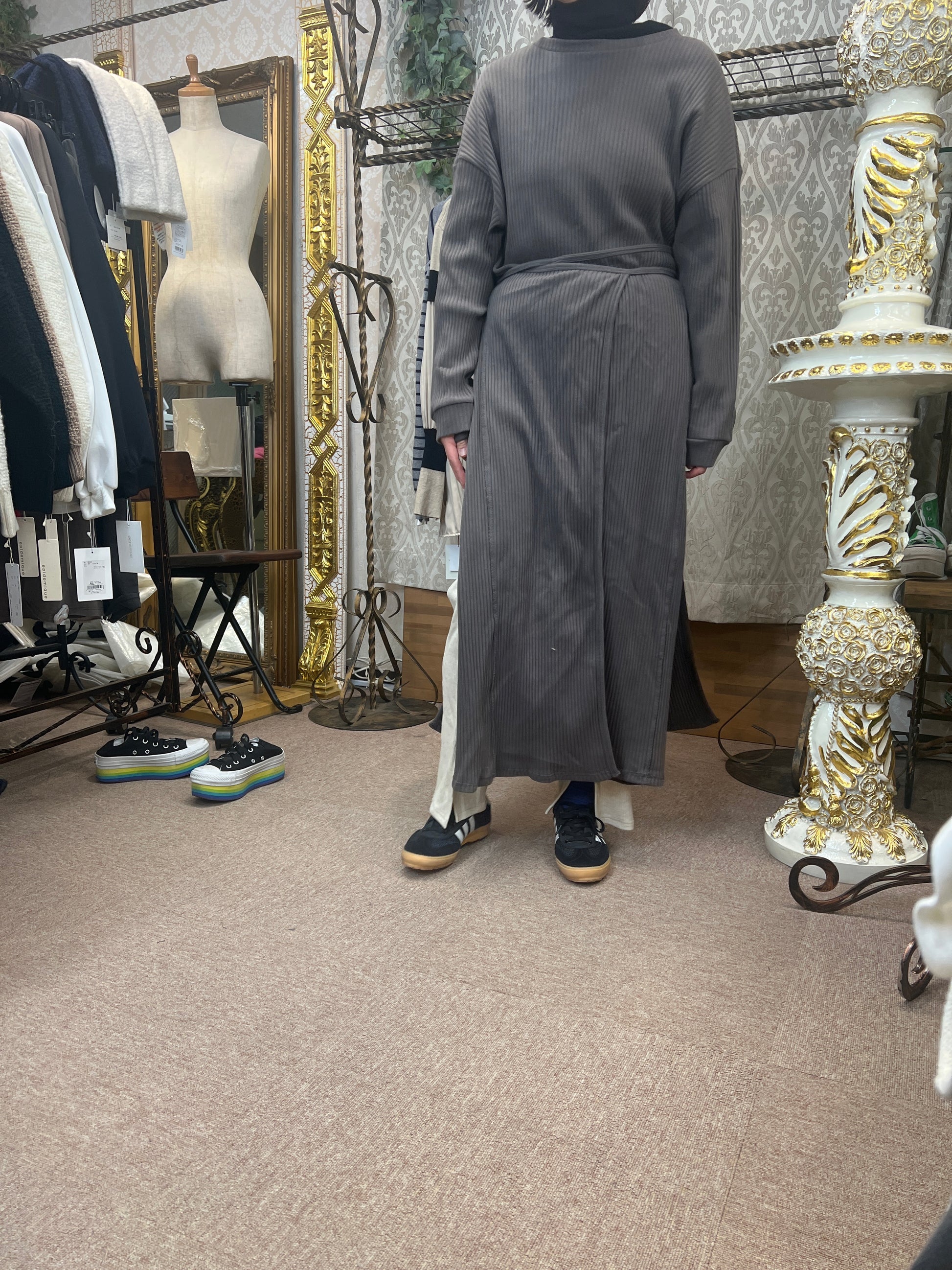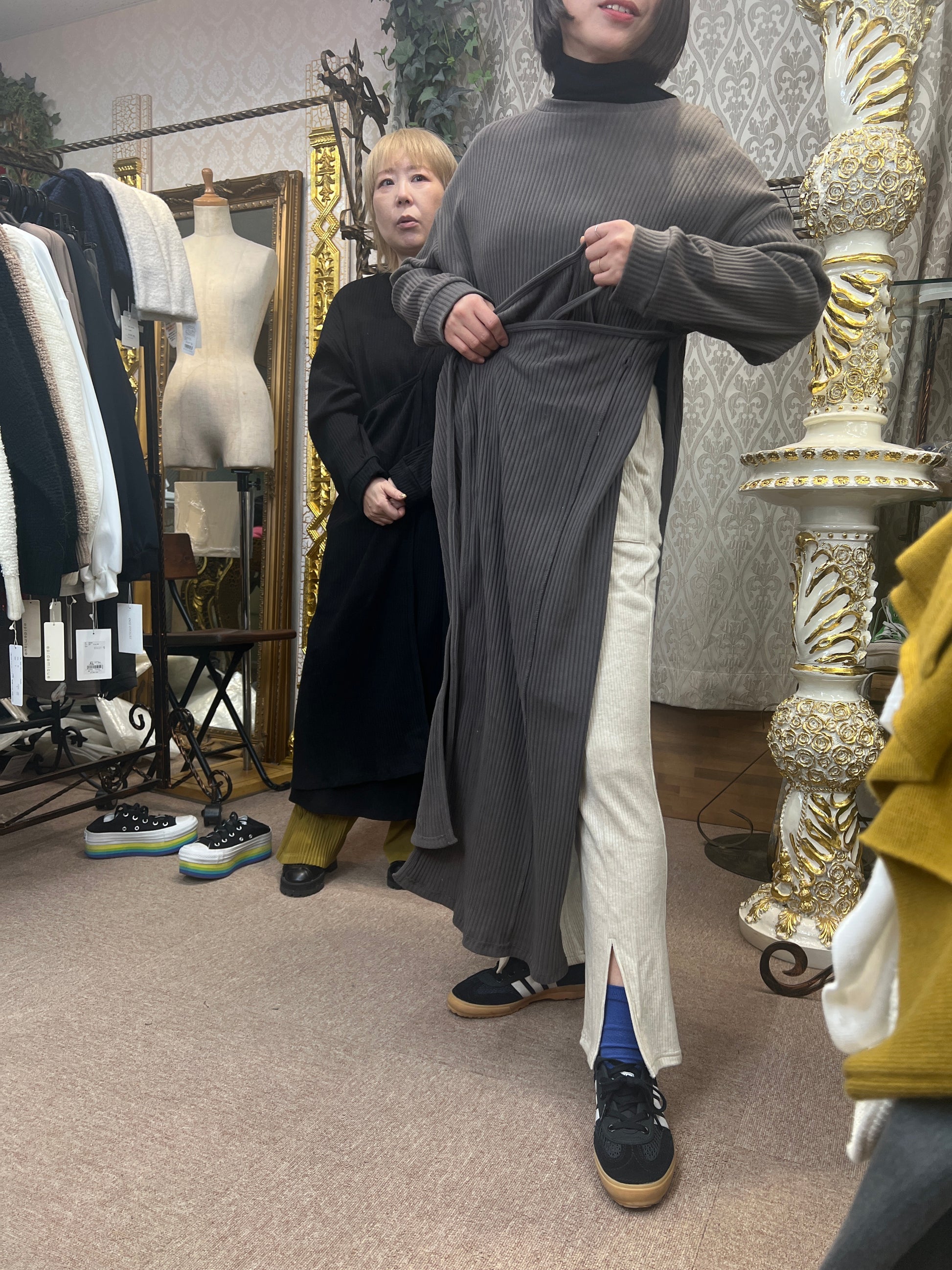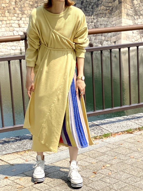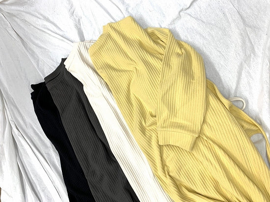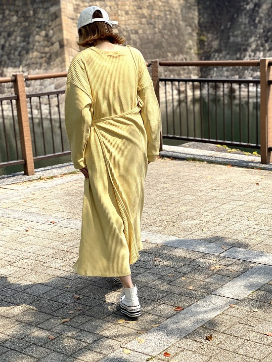 前後着用可能や紐使いで何通りの着方もできるリブワンピースです。