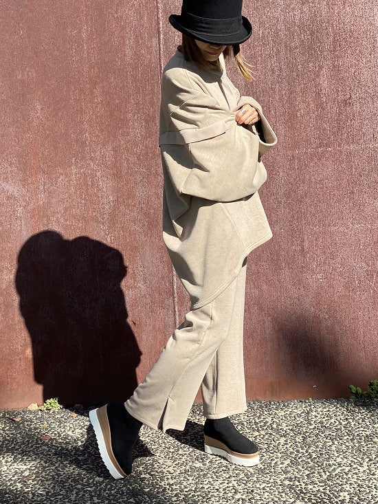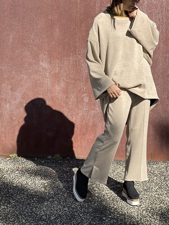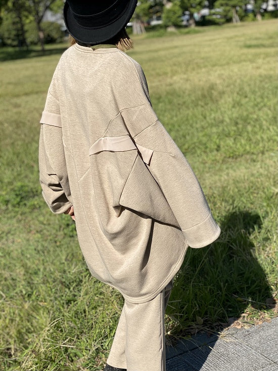 裏起毛になっていてあったかく、防寒アイテムとしても使えるトップスです。