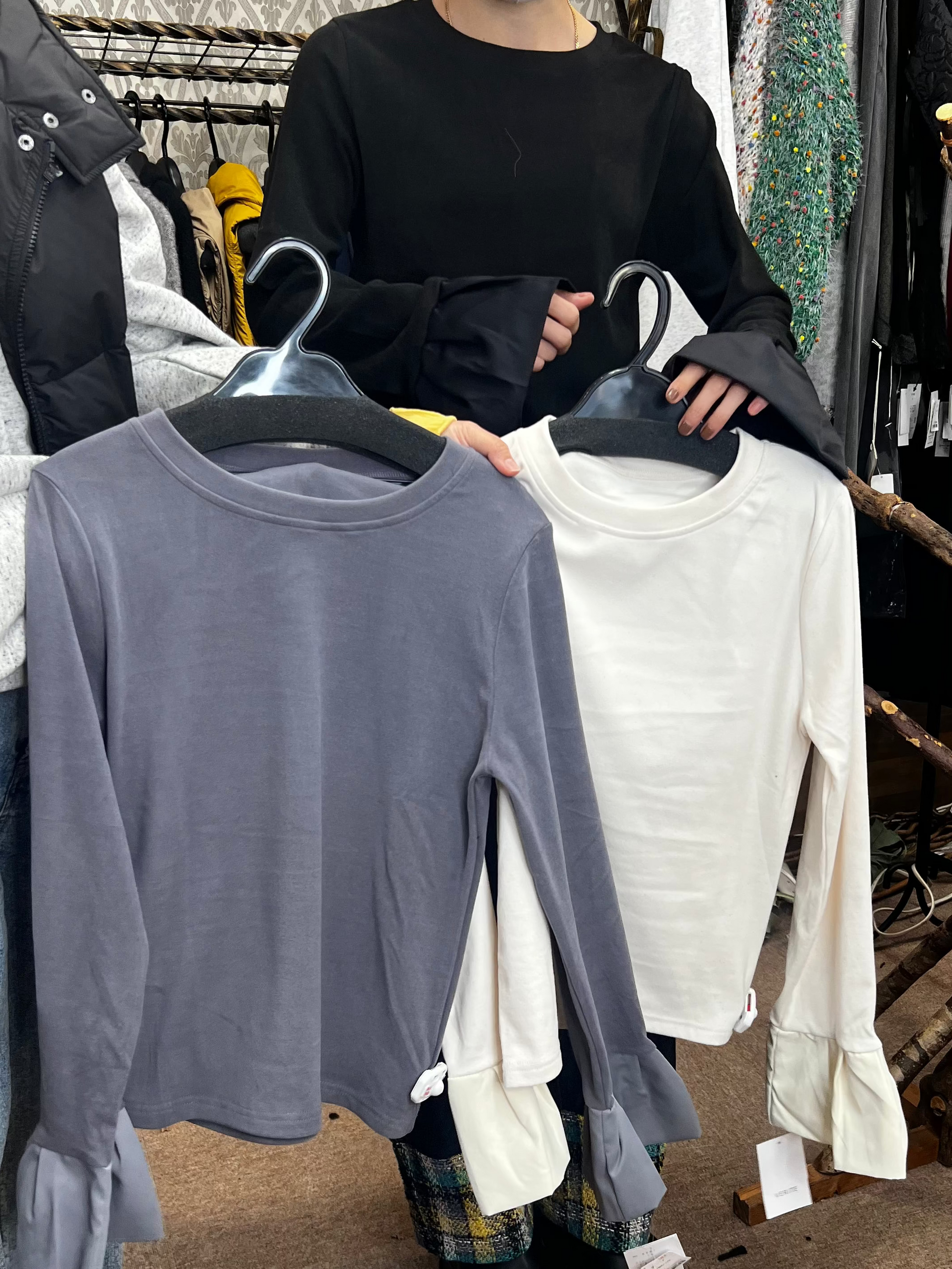 袖フレア起毛トップスの数量を増やす