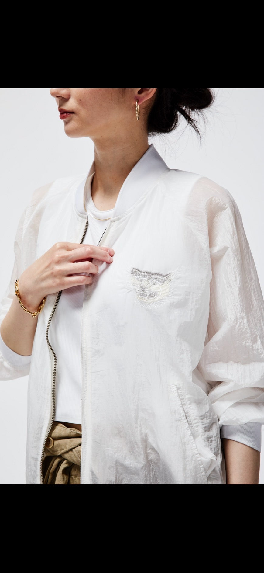 透け感のあるナイロンを使用したブルゾンです。