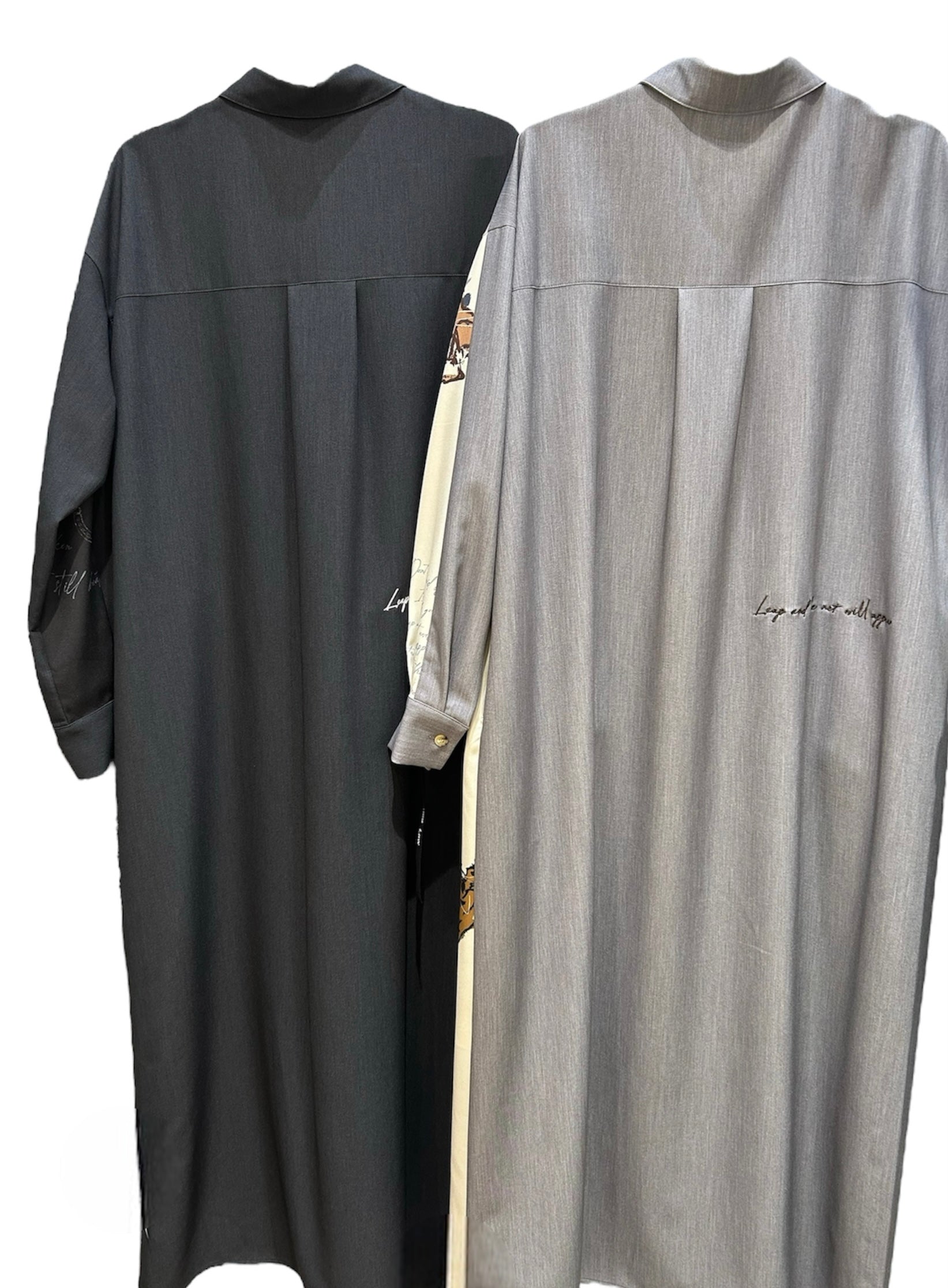 ロゴプレートや刺繍などエイミーらしさのある仕上がりです。ベルトは取り外し可能なのでお好きなシルエットにアレンジしてお楽しみください。前後で全く表情が違うシャツワンピース。落ち感がありカジュアルにもキレイ目にも着こなせます。ベルト、ポケット付き◎