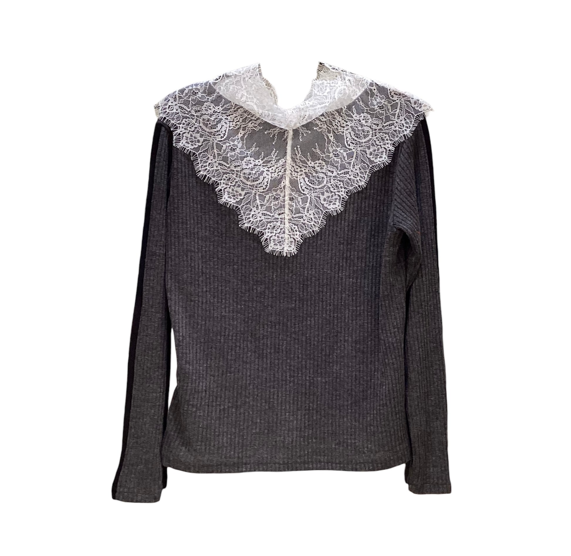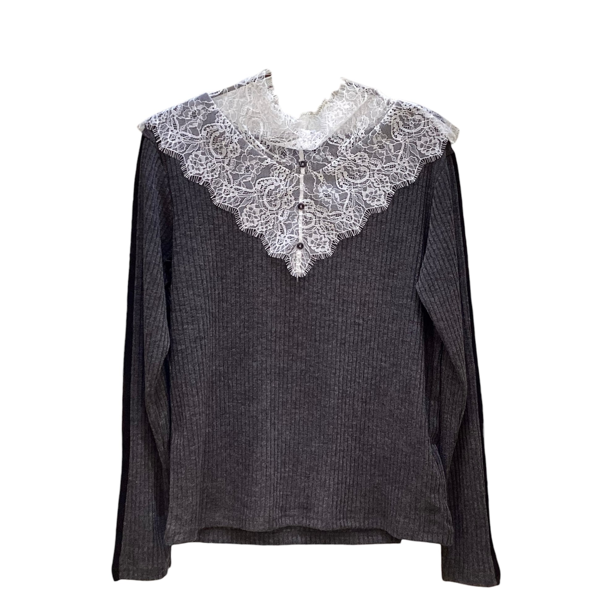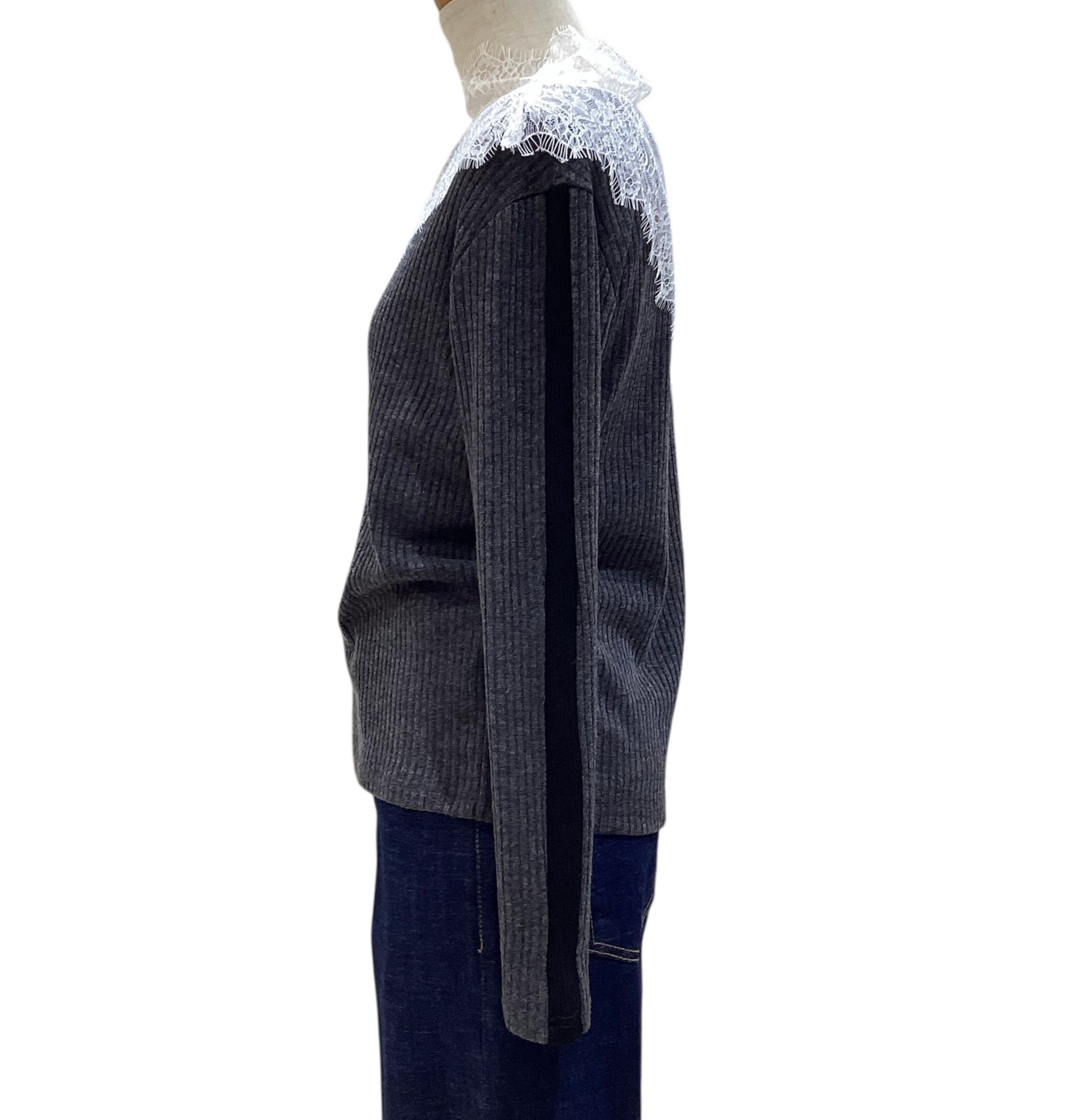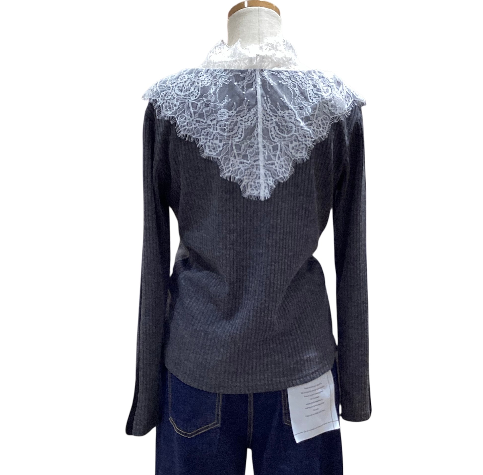 繊細なスカラップレースをあしらった衿が顔まわりを華やかな印象に◎ほどよくゆとりのあるサイズ感で身体のラインを拾いすぎず、ウエストインもしやすい丈感です。袖のラインが全体を引き締め、ジャケットやベストのインナーとしても存在感を発揮してくれます。