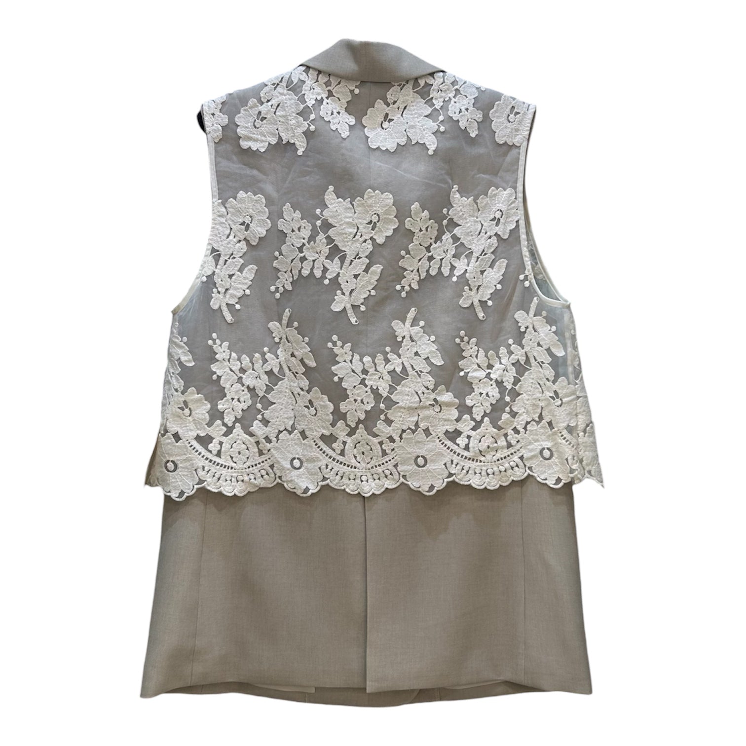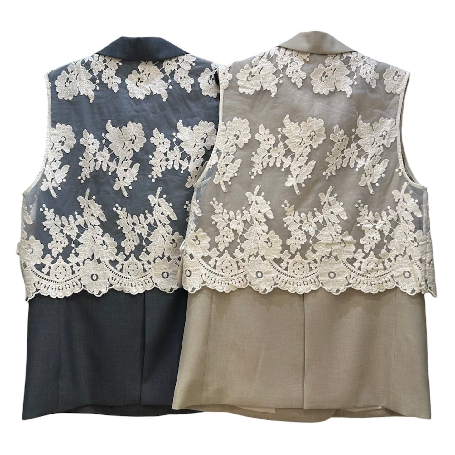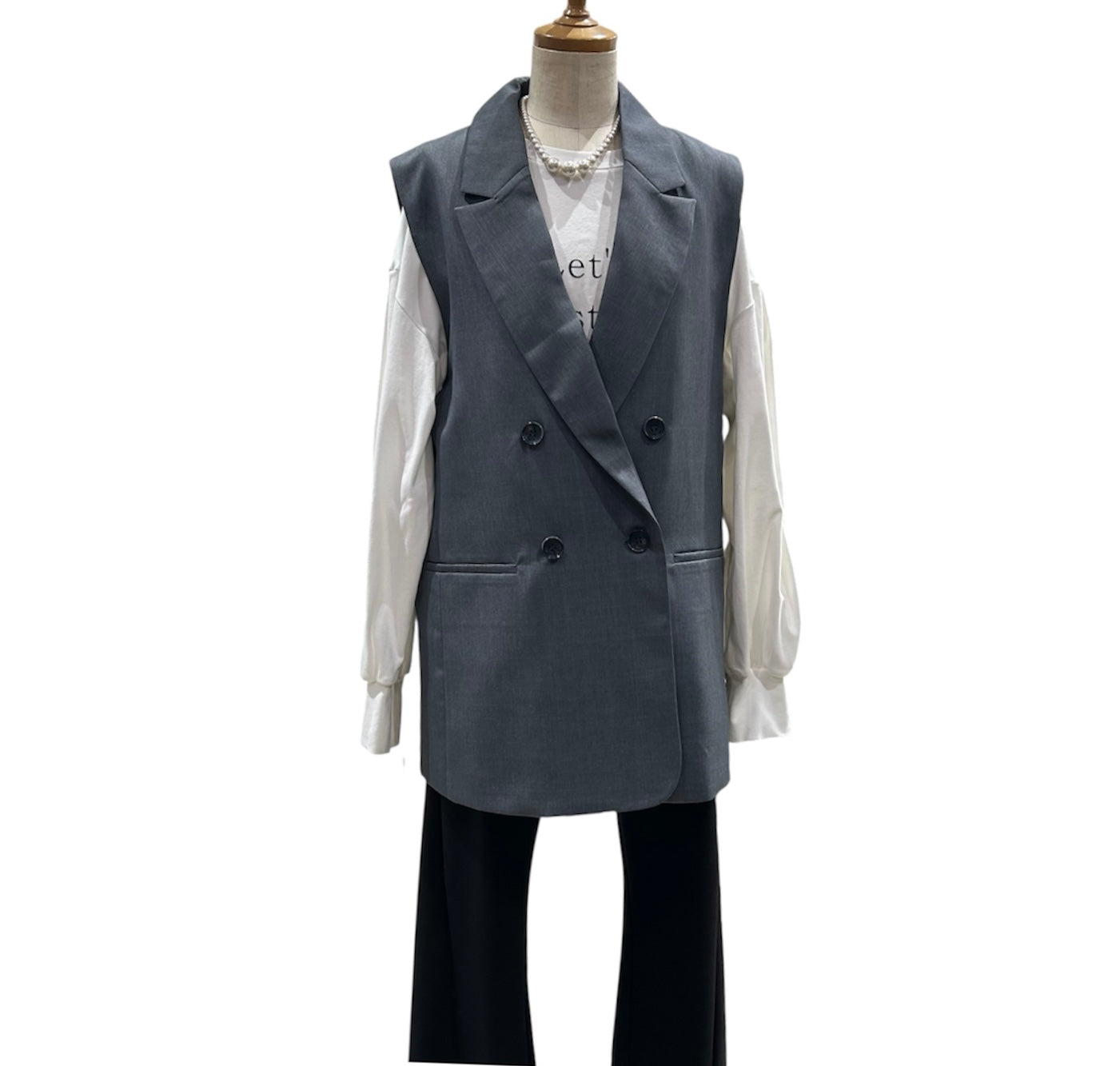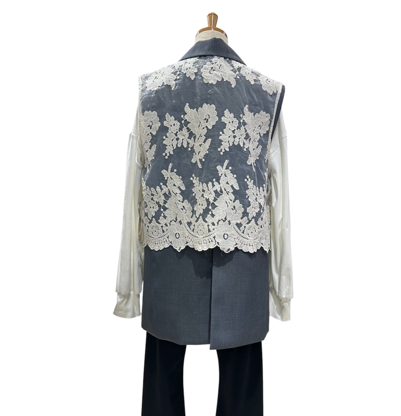 ハンサム仕上げのジレにオーガンジー刺繍ベストを合わせた存在感ある、Wボタンジレです!