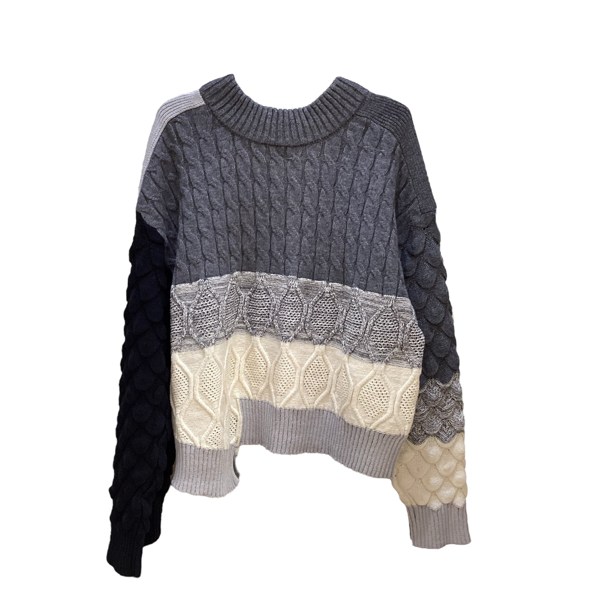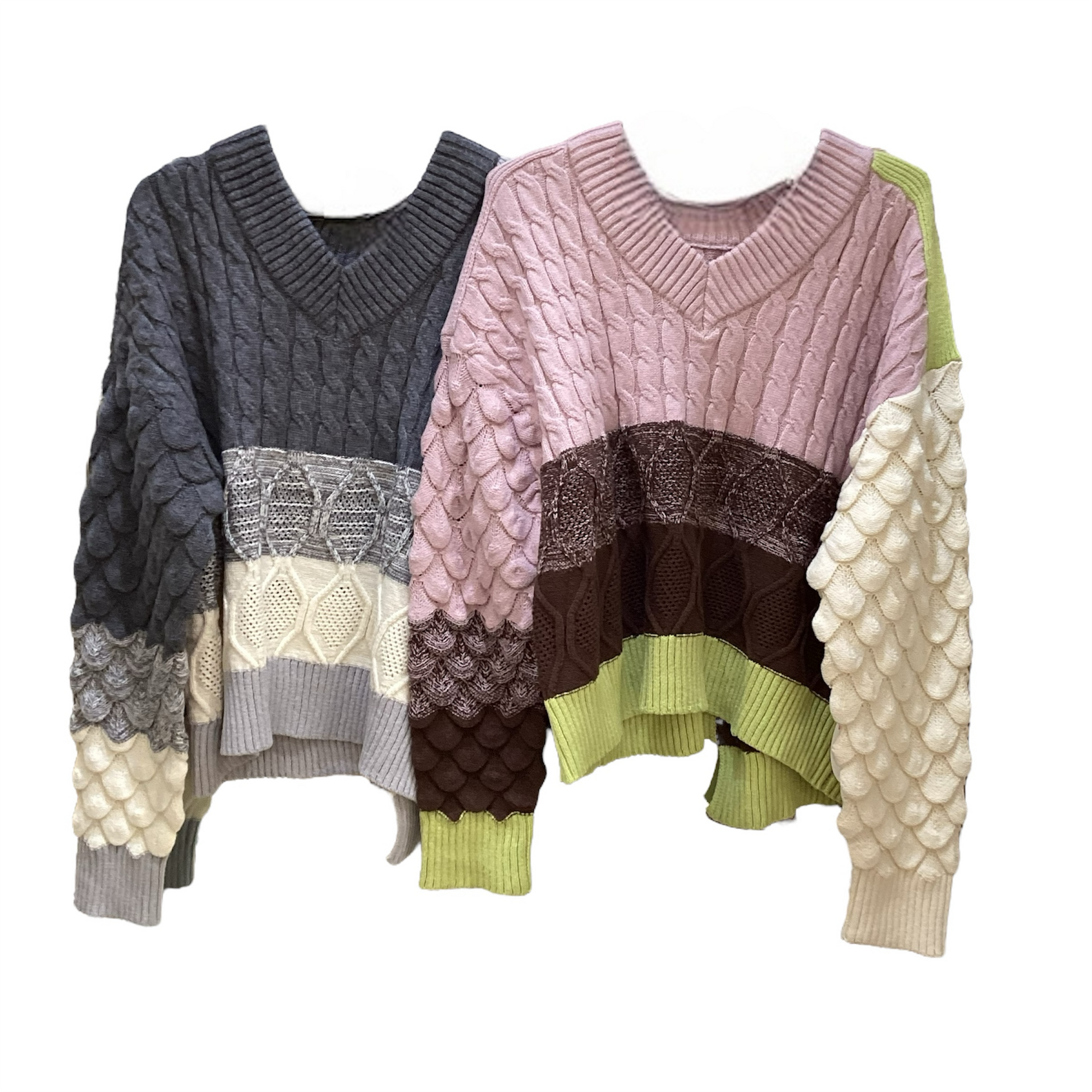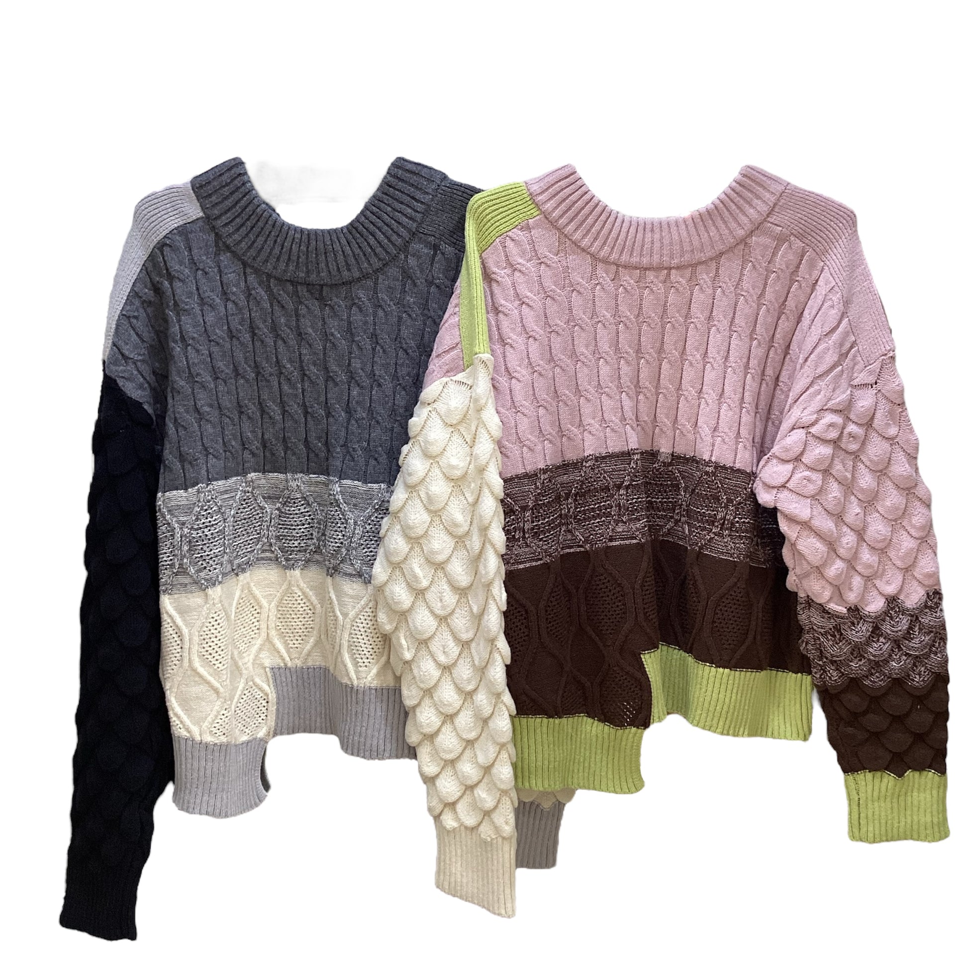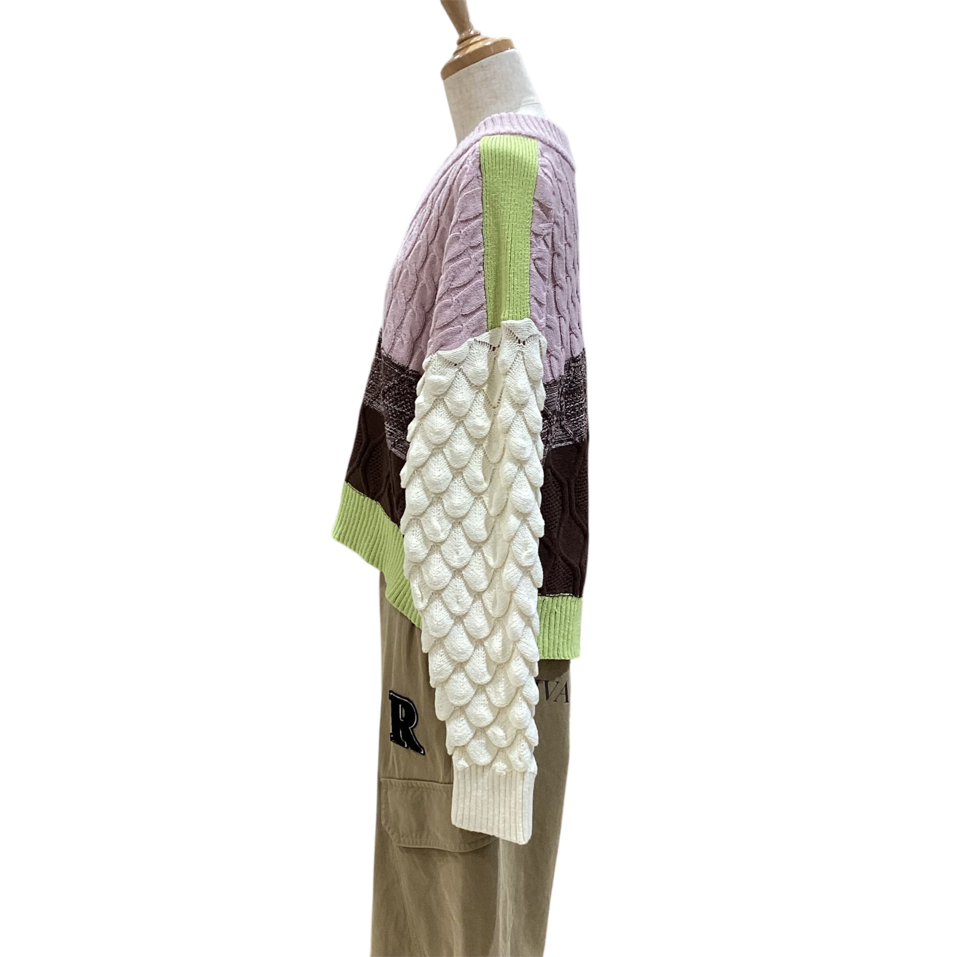 様々な編み地と配色を組み合わせたキャッチーなケーブルニットです!