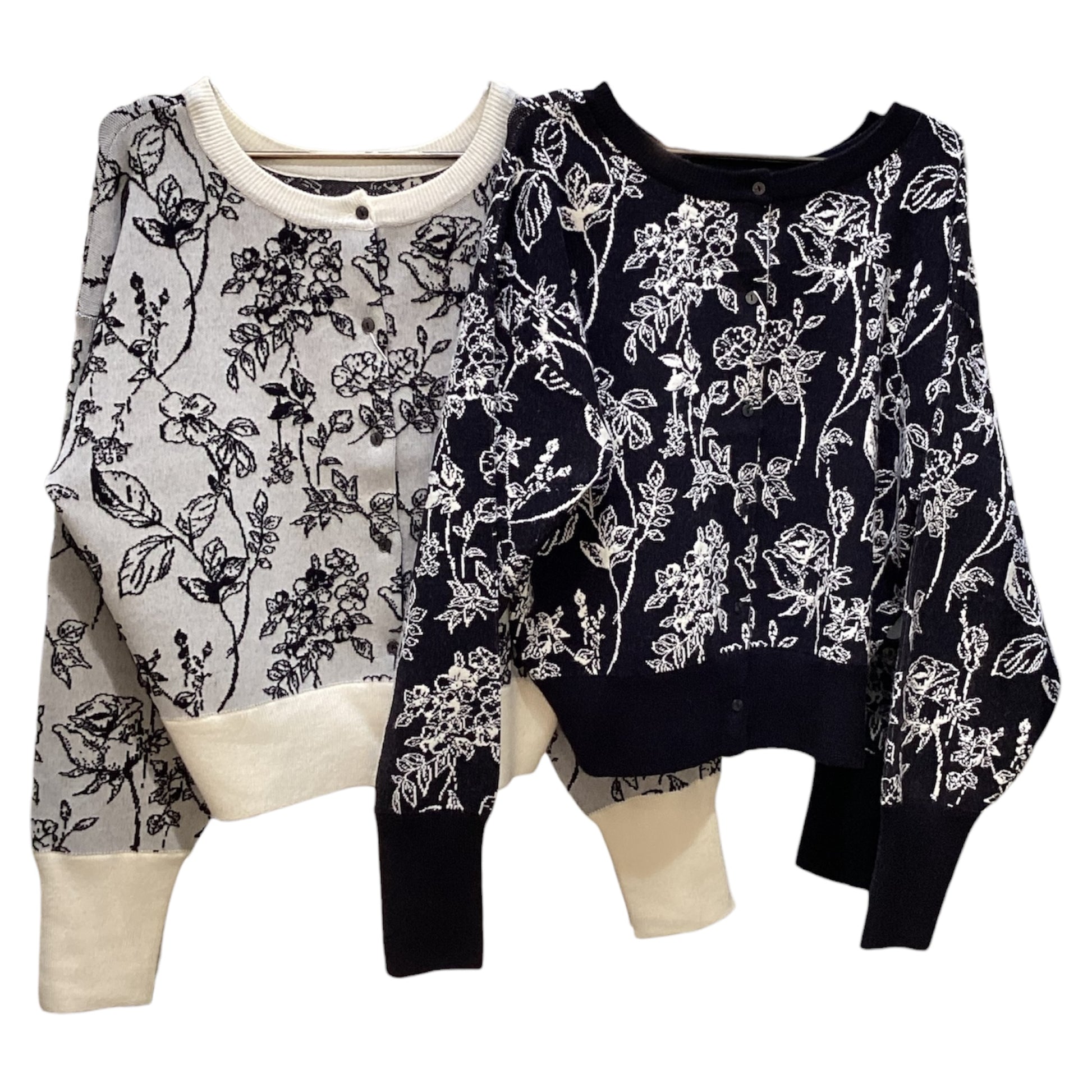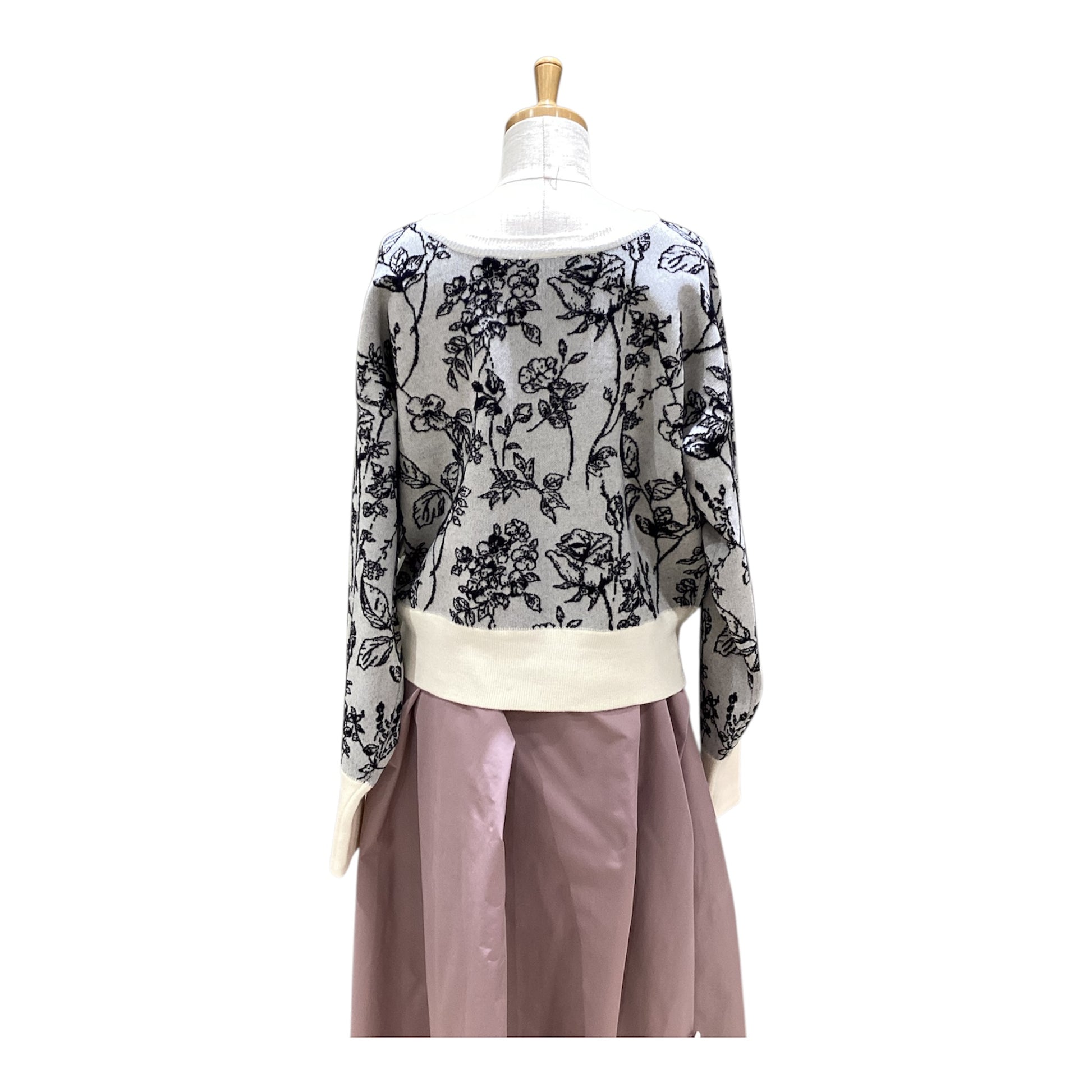 ジャガード織の花柄が繊細でボトムスは何でも合わせやすい丈感です。