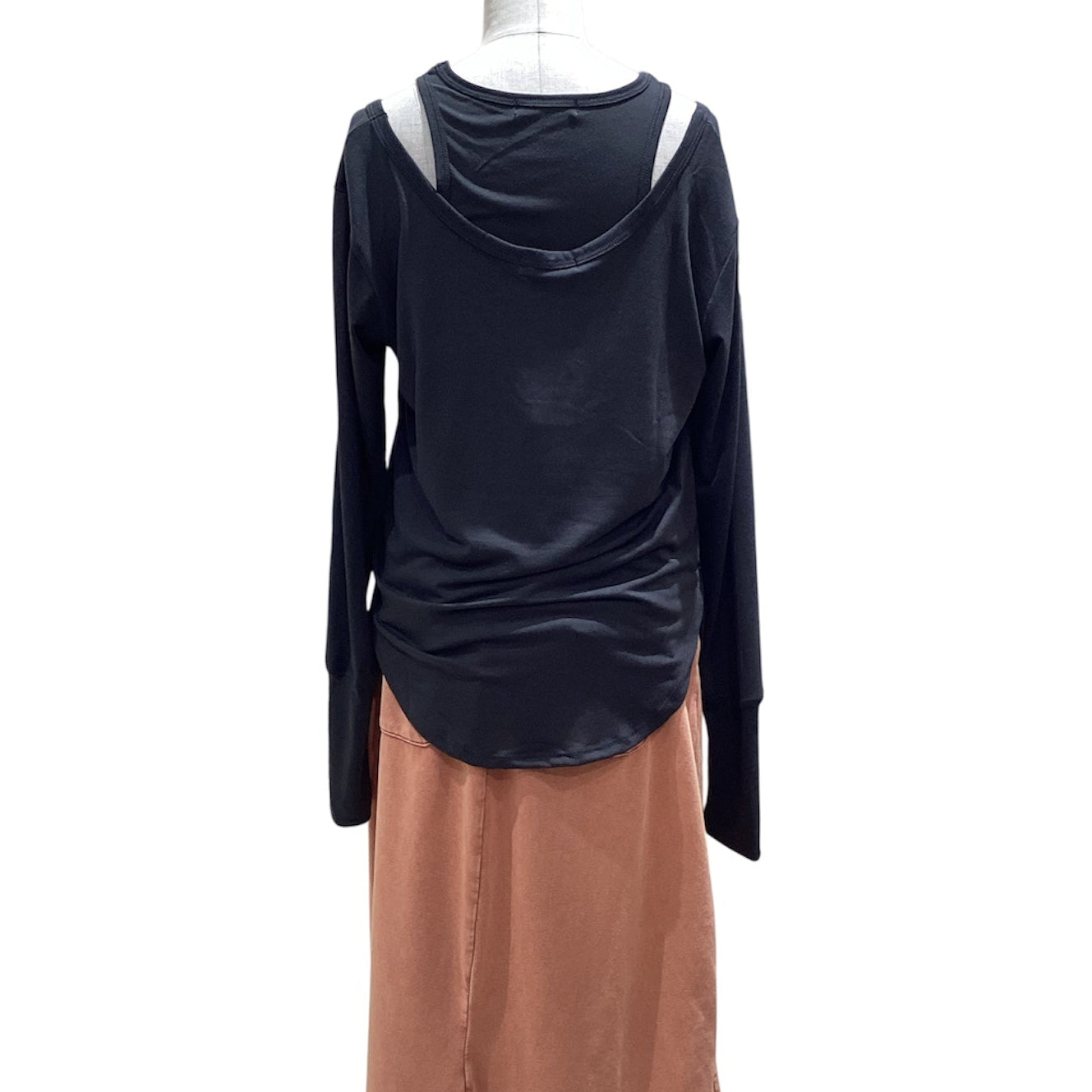 さらっと肌になじむ素材で、タイト過ぎないサイジングでこなれ感アップ◎タンクトップとUネックトップスで襟ぐりのレイヤード感にこだわったデザインにラウンド裾もこだわりあるデザインです。それぞれ単体で使えるだけでなく、様々なアイテムとのレイヤードも楽しめます。袖に入ったスリットで抜け感もプラス。伸縮性もあり肌触りも◎