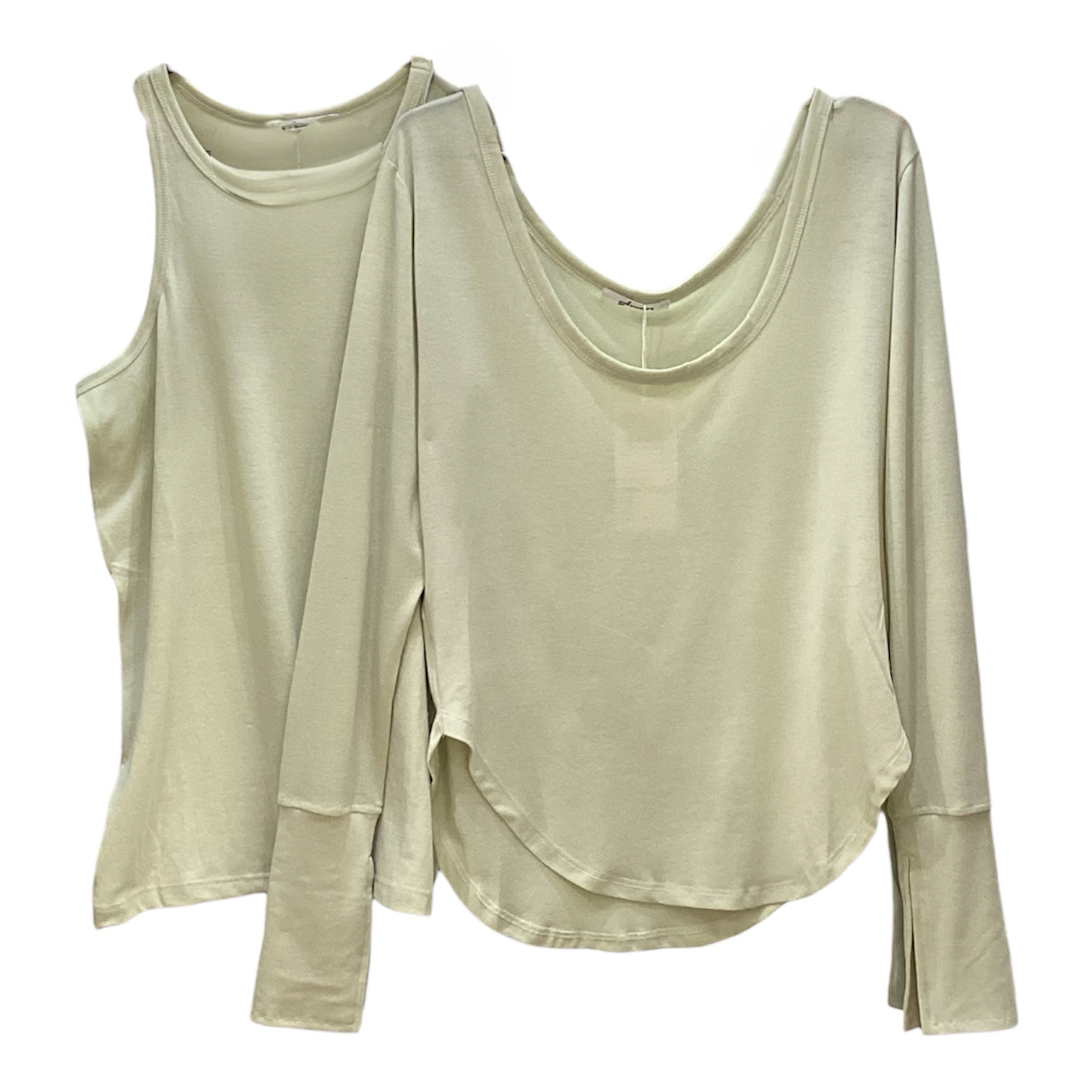 シアー素材のレイヤードが目を惹く、タンク&長袖Uネックトップスセットです!