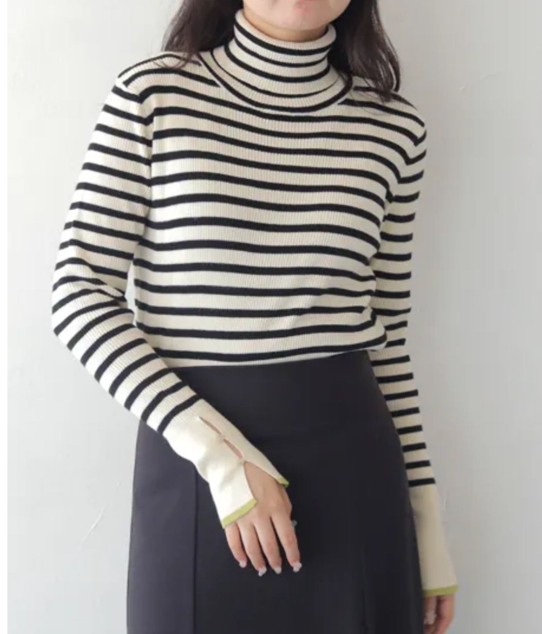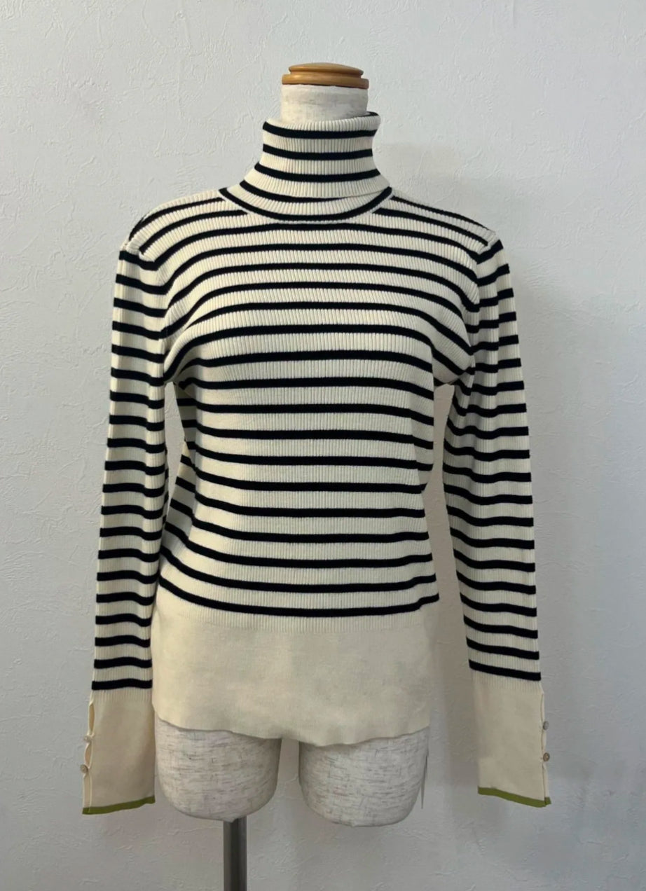 vingtrois 配色ラインタートルニット